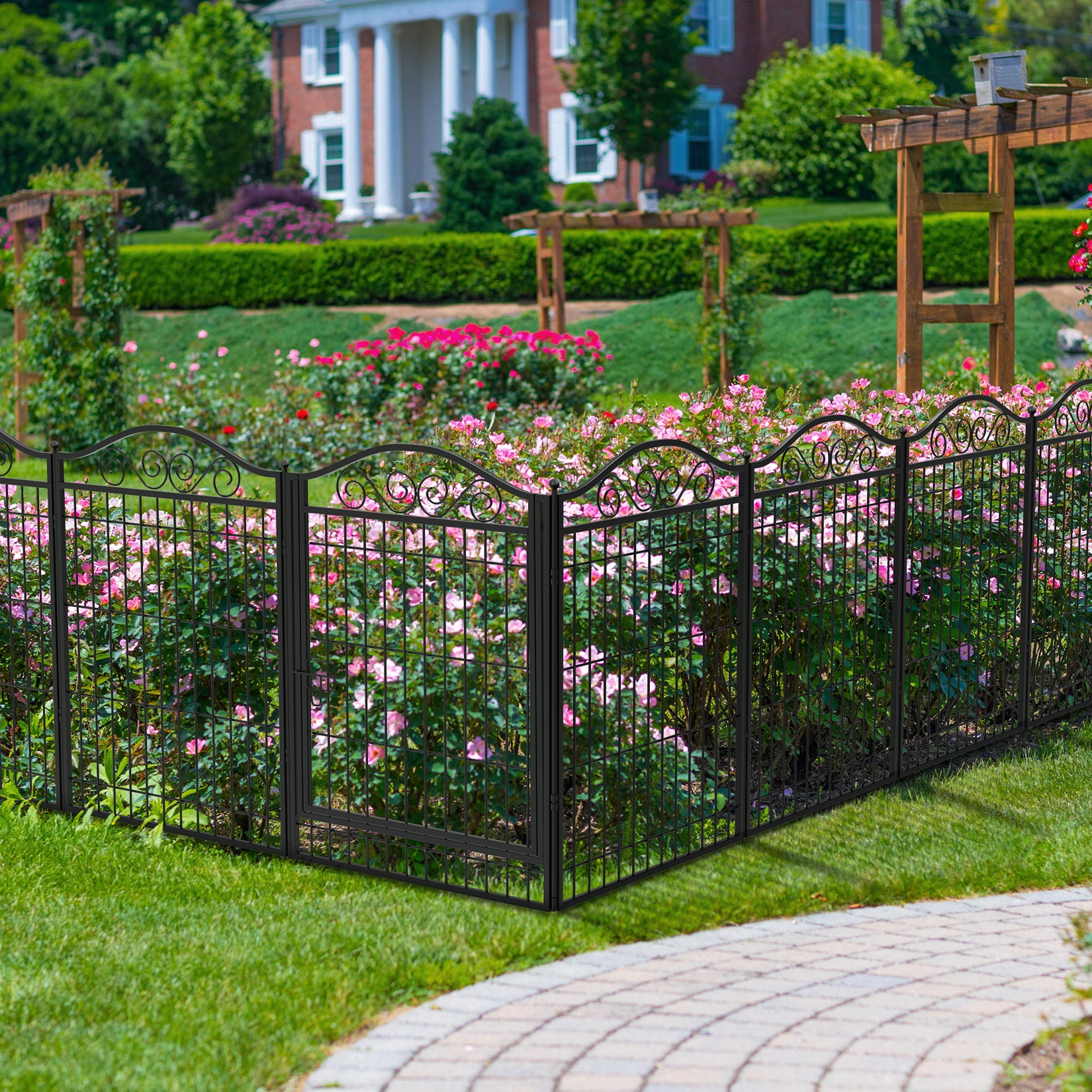 Multifunctional use as indoor dog playpen, also as garden fence for plants in outside.