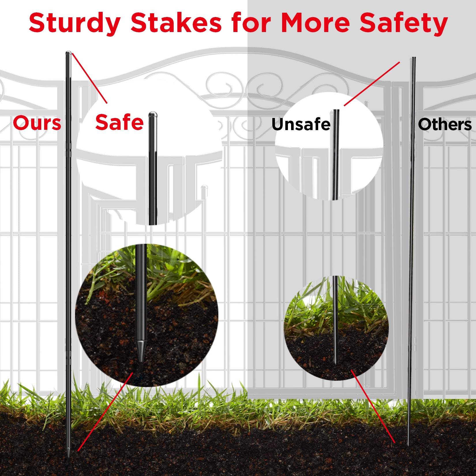 The latches easily insert into the ground to keep upright, firmly in place.