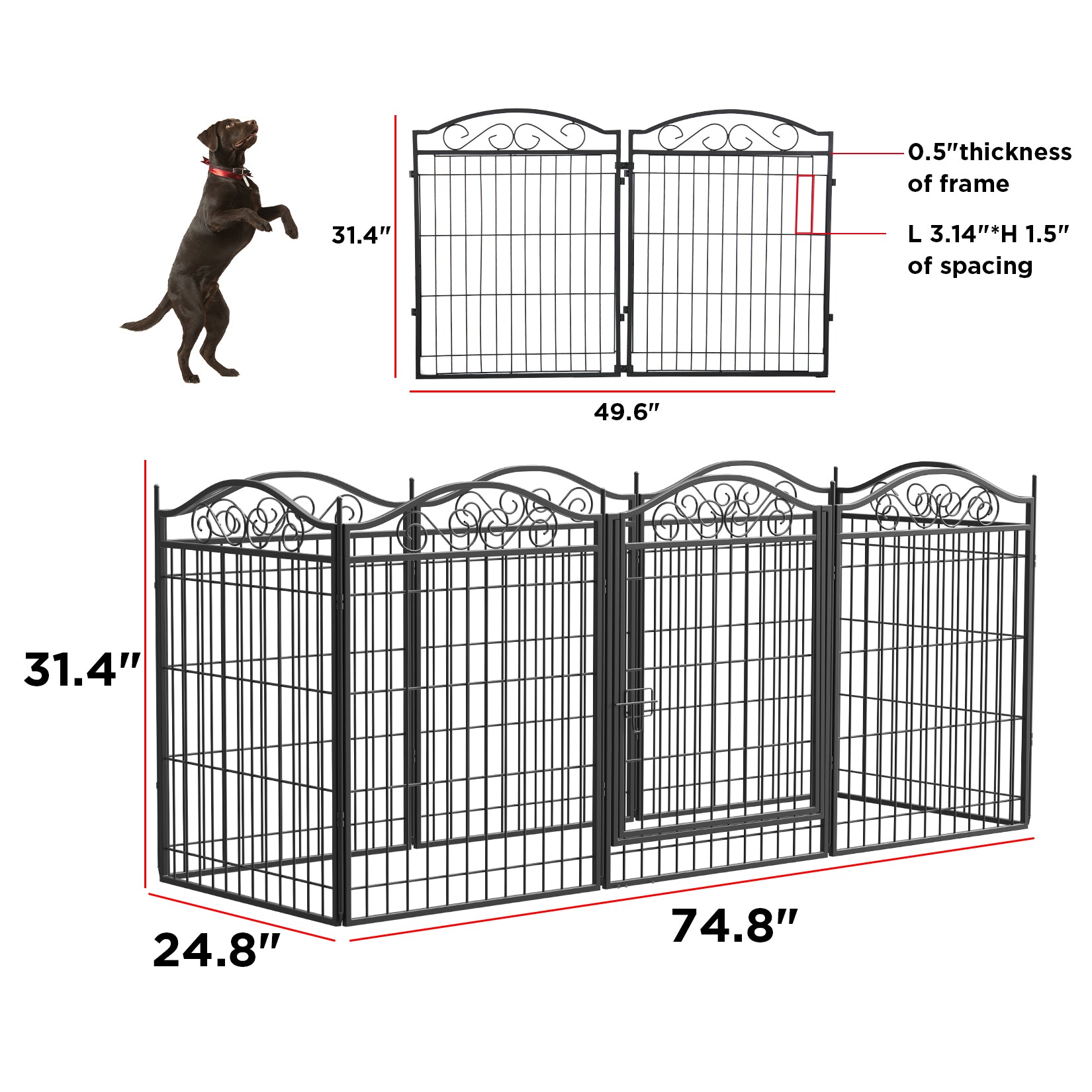 31.4-inch high is more suitable for small puppies to medium-sized dogs.