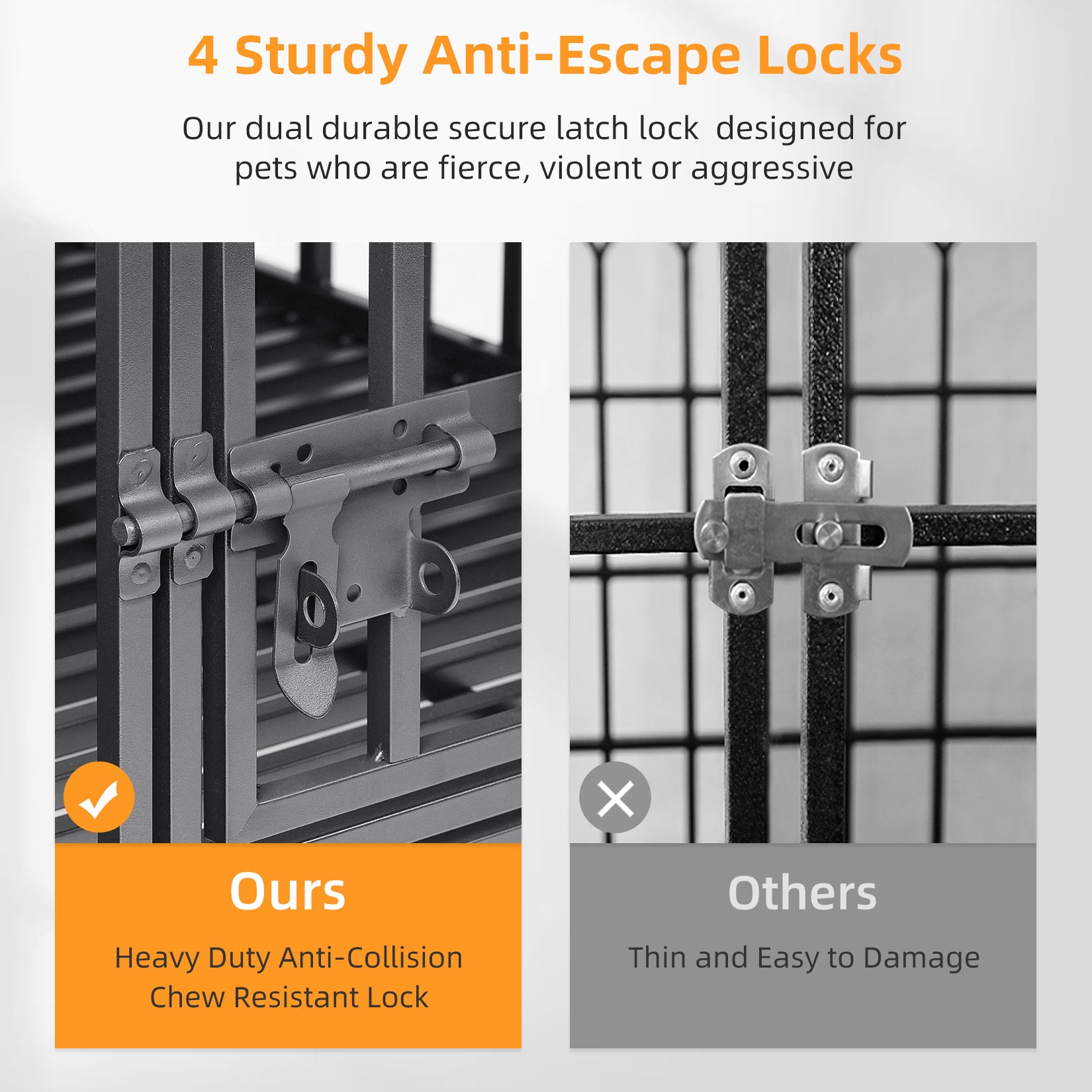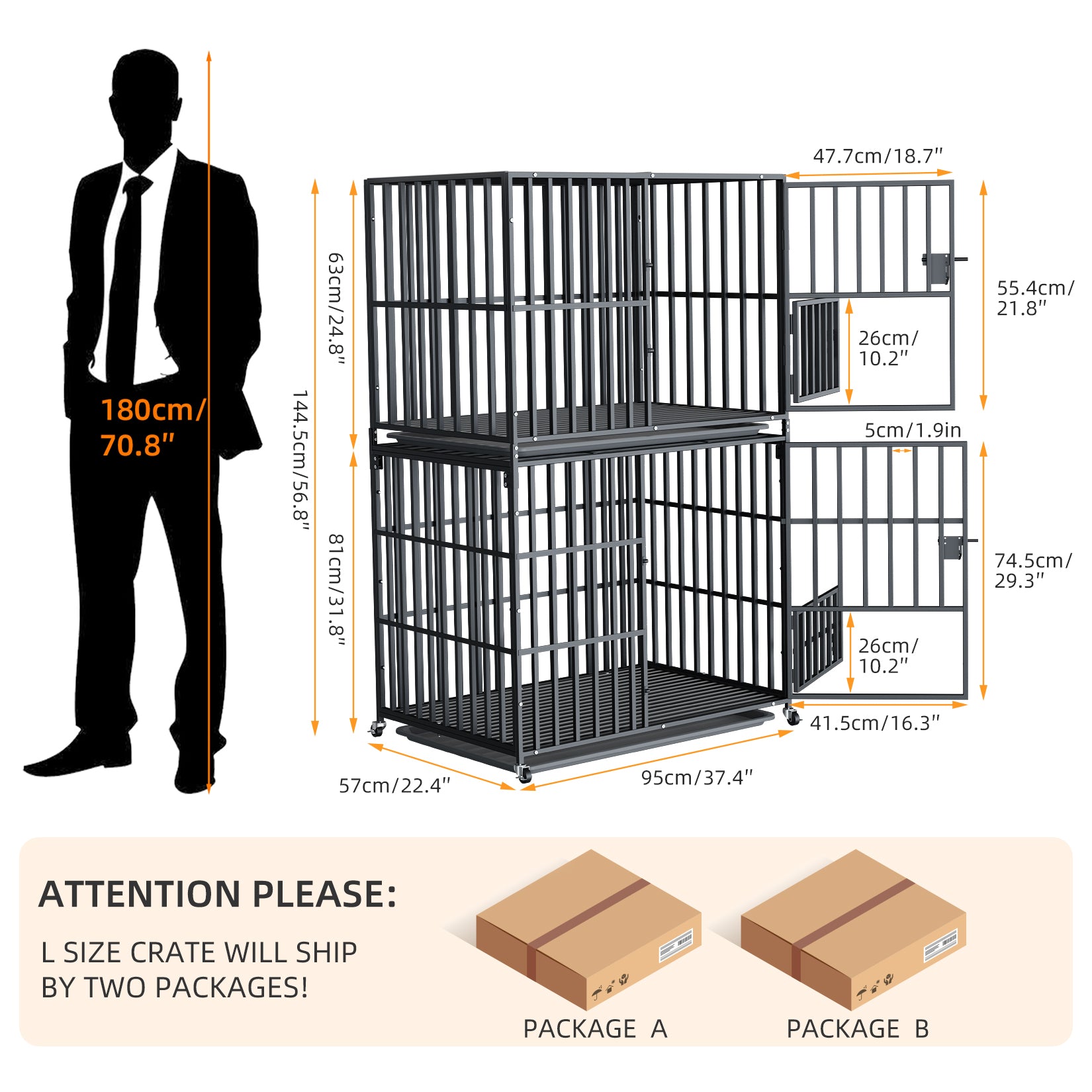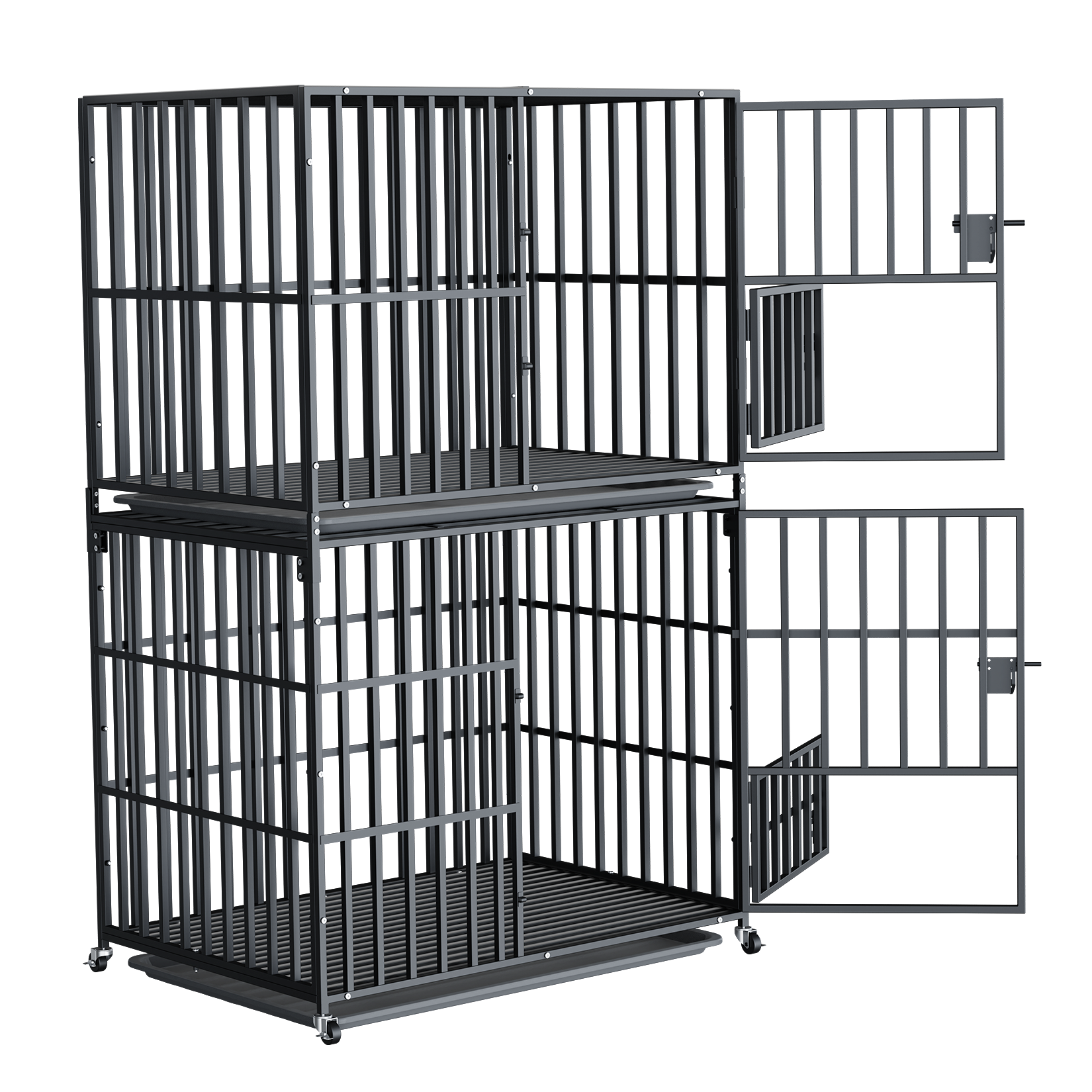 Stackable Dog Cage: Heavy Metal Dog Kennel Square Tube Cage with Double Layers Stackable Pet Crate w/ Casters, Removable Tray, Lock Latch