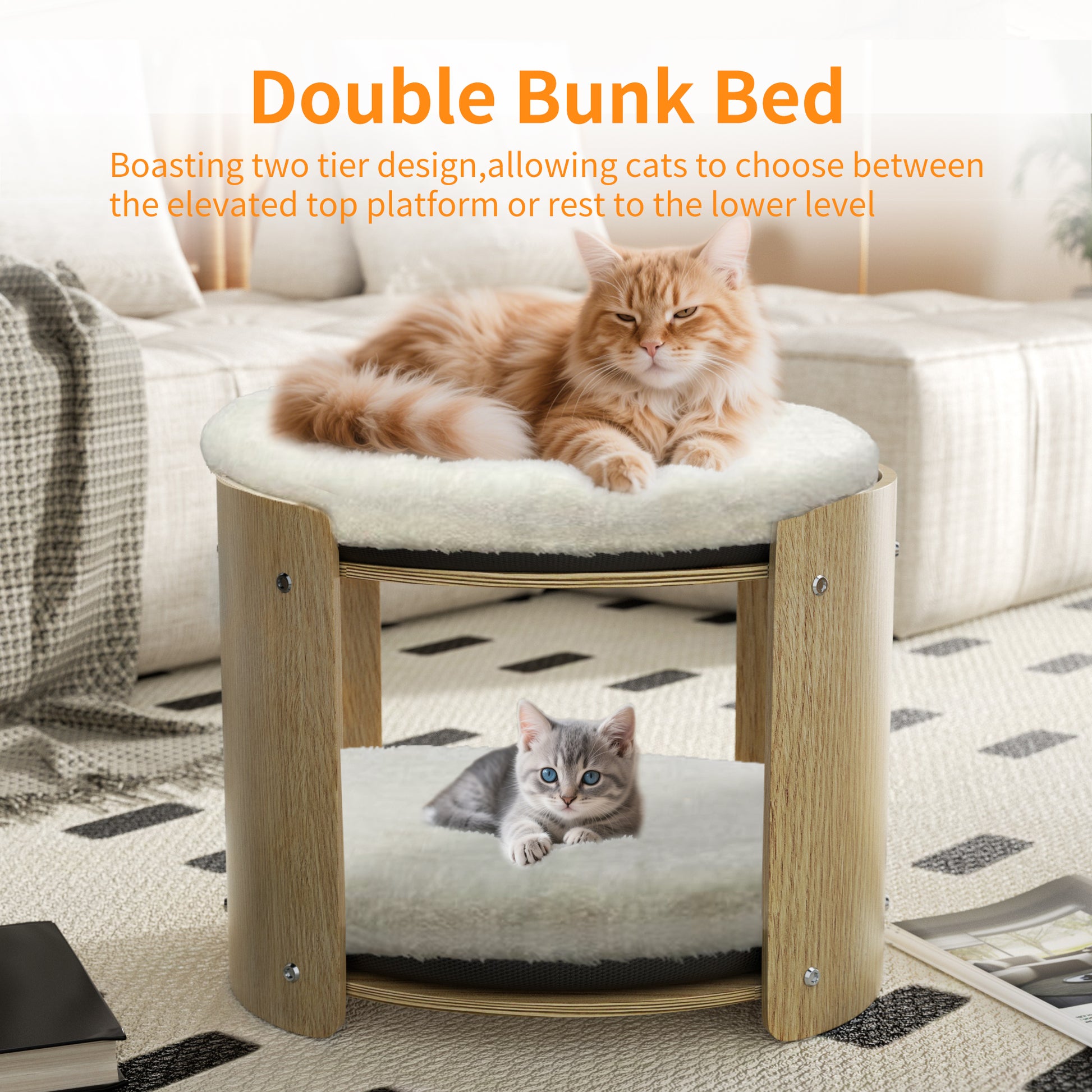 2-Tier Elevated Cat Bed Double Cat Tower Bed for Indoor Cats, Thicker Plush Mats