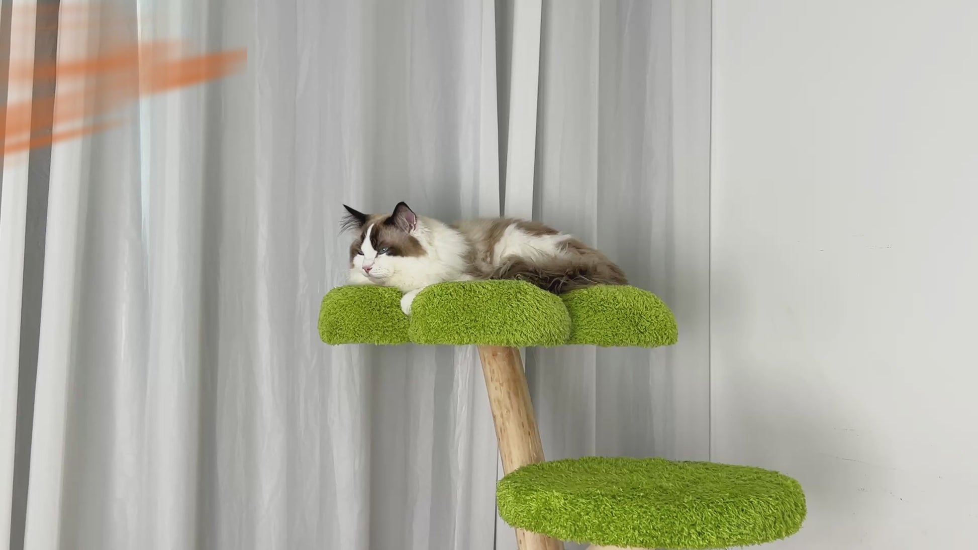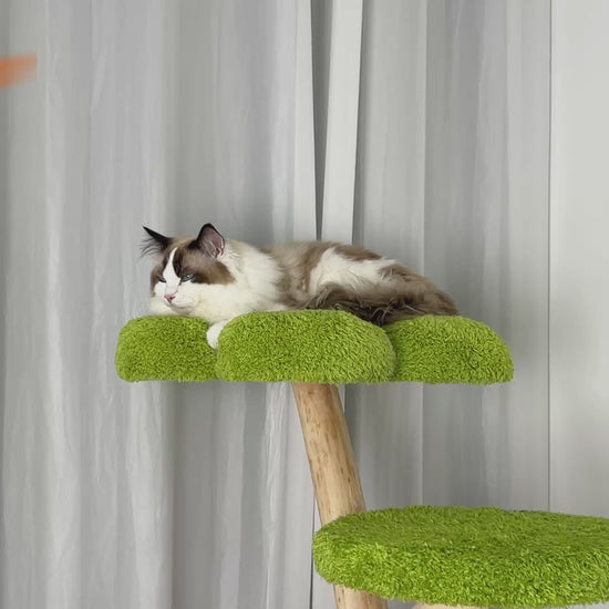 Adorable Tree-Inspired Design: Bring the charm of the outdoors into your home with this adorable tree trunk cat condo, designed to mimic a real tree, it features a plush brown trunk and soft green leafy stairs that capture a woodsy appeal while fitting seamlessly into any home décor, this modern cat tree is not just a piece of cat furniture, it's a decorative centerpiece that combines fun and function, a space your cats will love, and one youll be proud to display