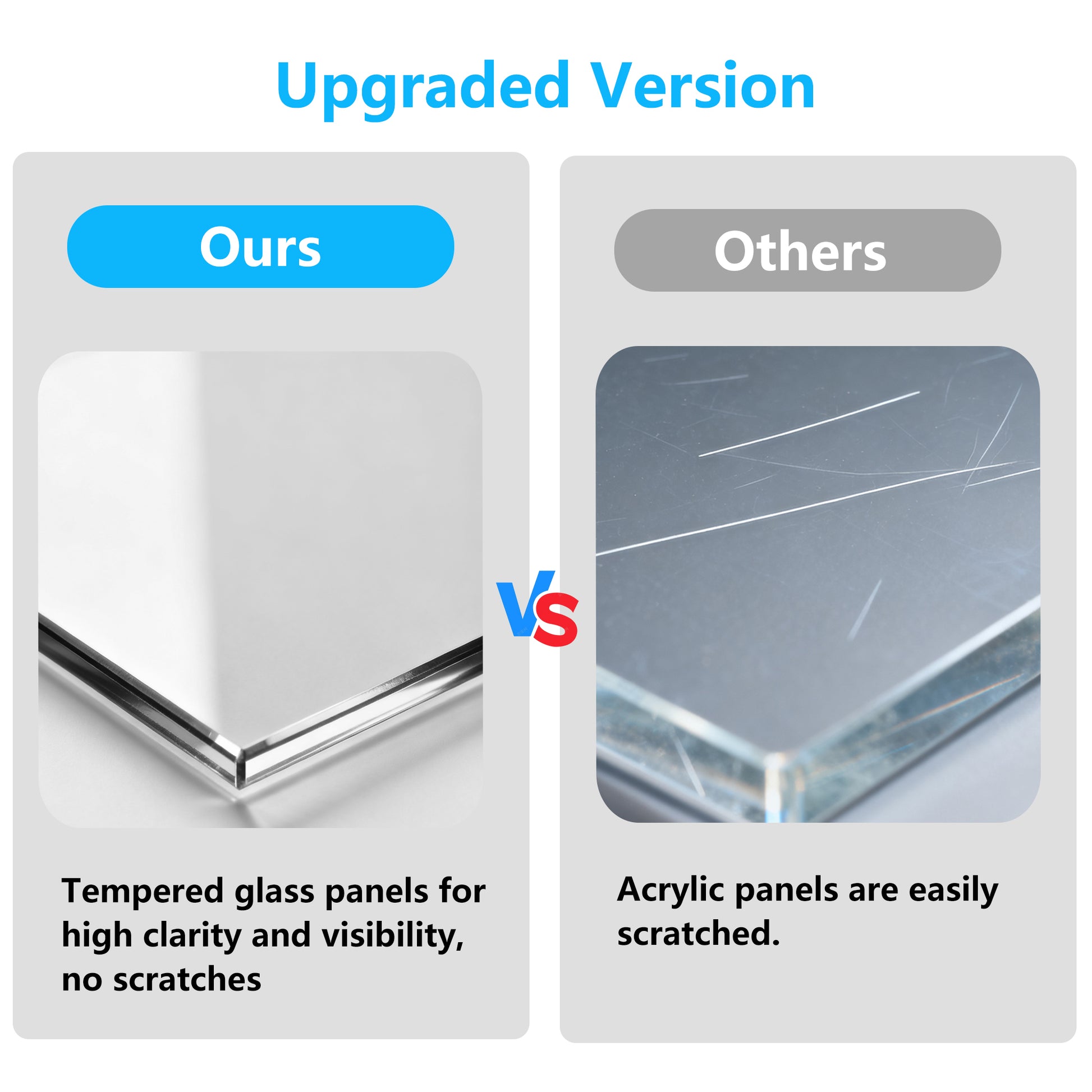 【High-Transparency Tempered Glass】Equipped with tempered glass panels, the cage is up to four times stronger than the acrylic and regular glass on the market, offering exceptional resistance to bites, impacts, stains and scratches, the glass surface ensures clear visibility, allowing you enjoy a full view of your hamsters’ playful activities at any time, never miss every moment, giving them a more open and less confined feeling, can be wiped clean effortlessly