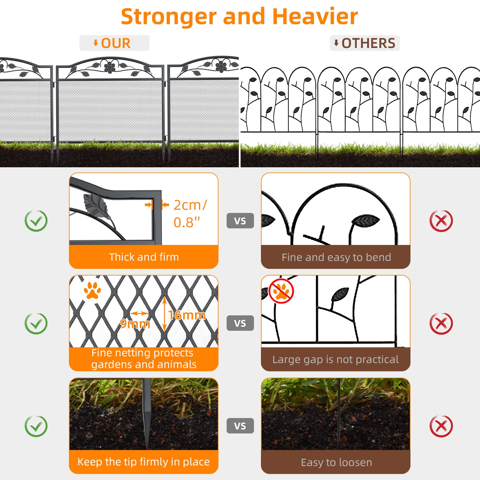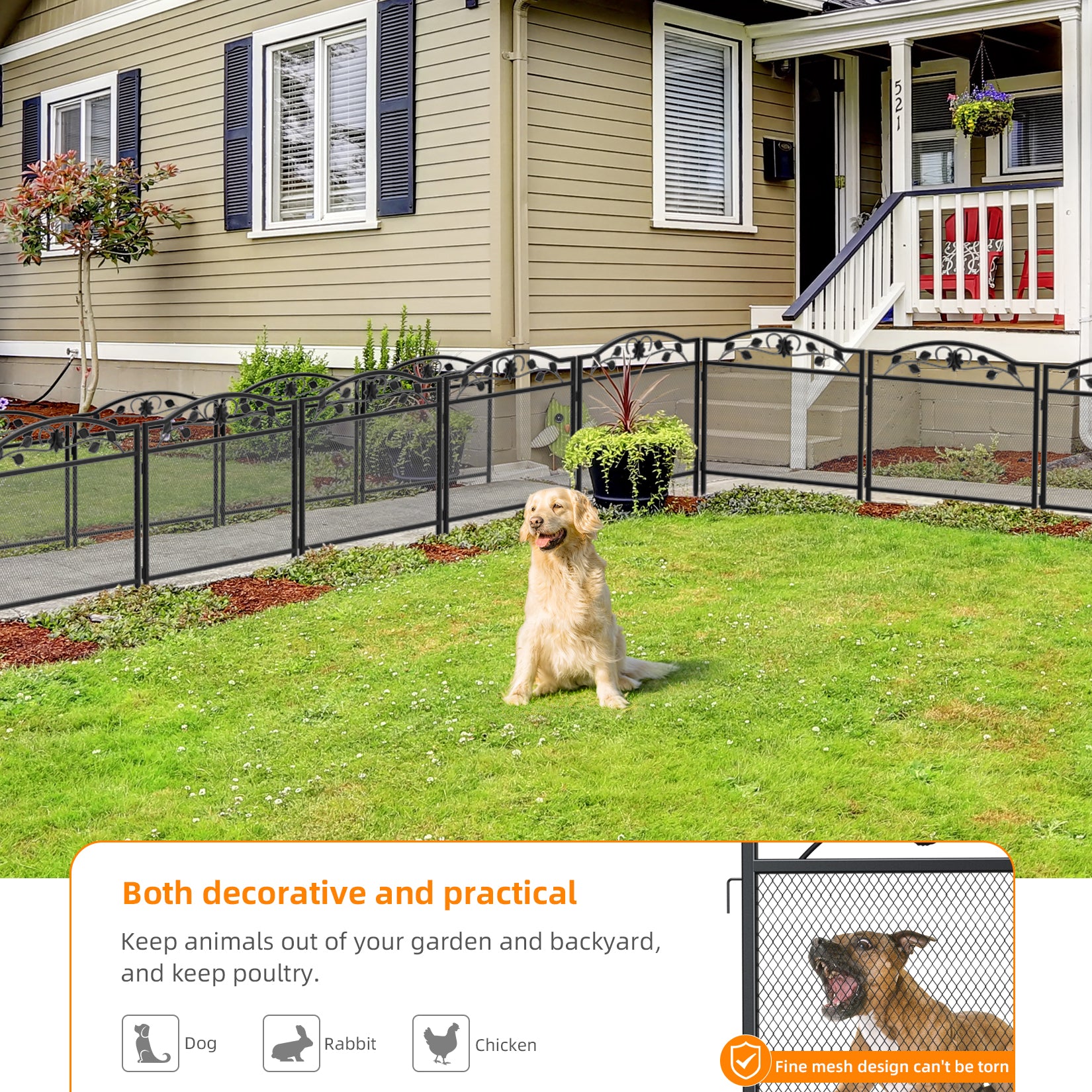 【No Assembly Required】Easily install these metal fence panels without digging or using any extra tool, all you need to do is insert them directly into the soil, they can also be detached and moved, simply pull the spiked feet of this flower garden fence out from the ground and assemble them in another spot