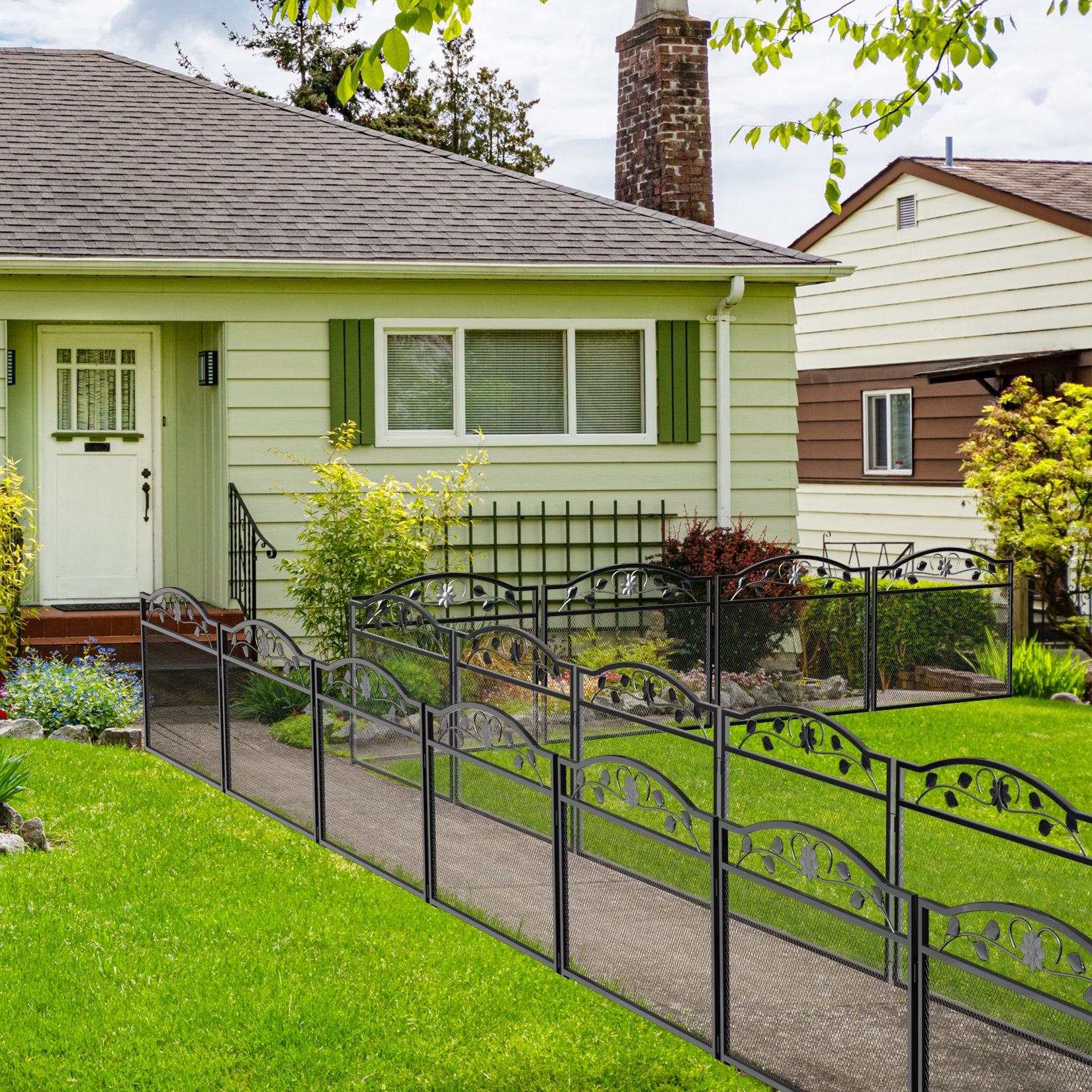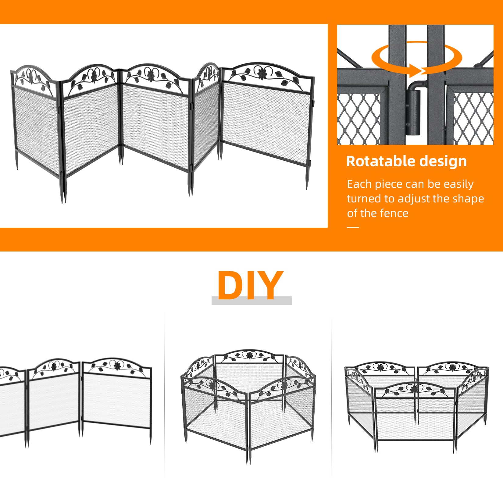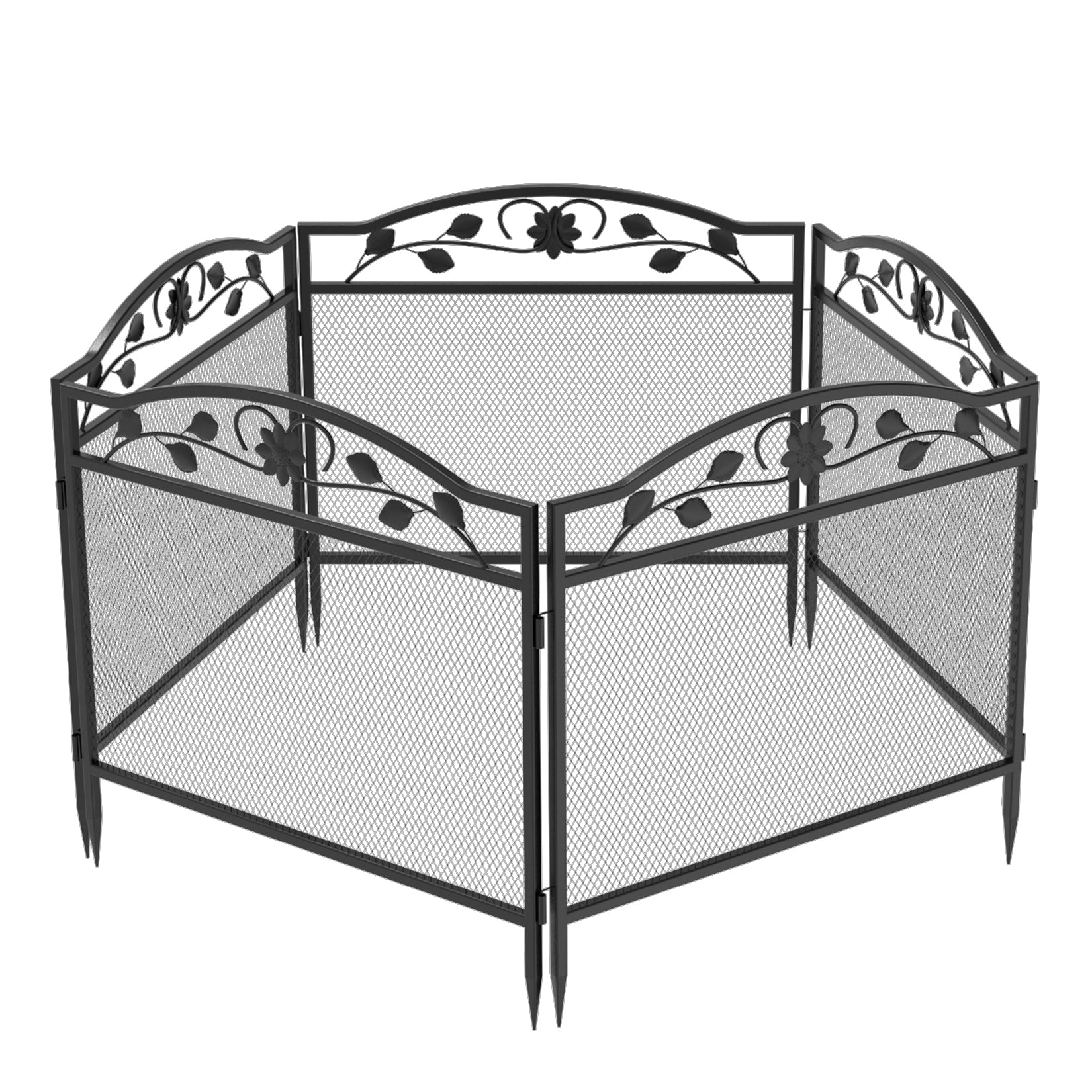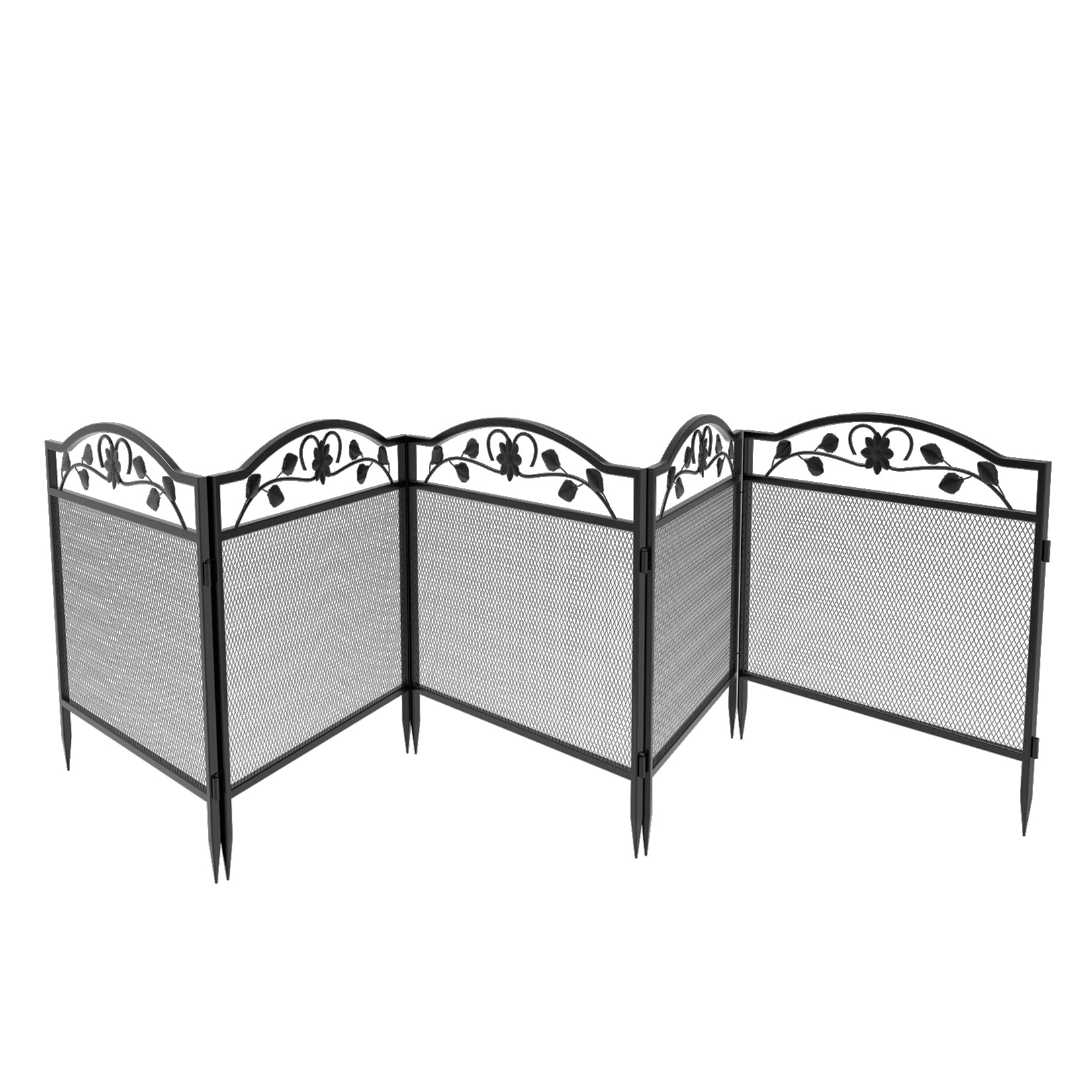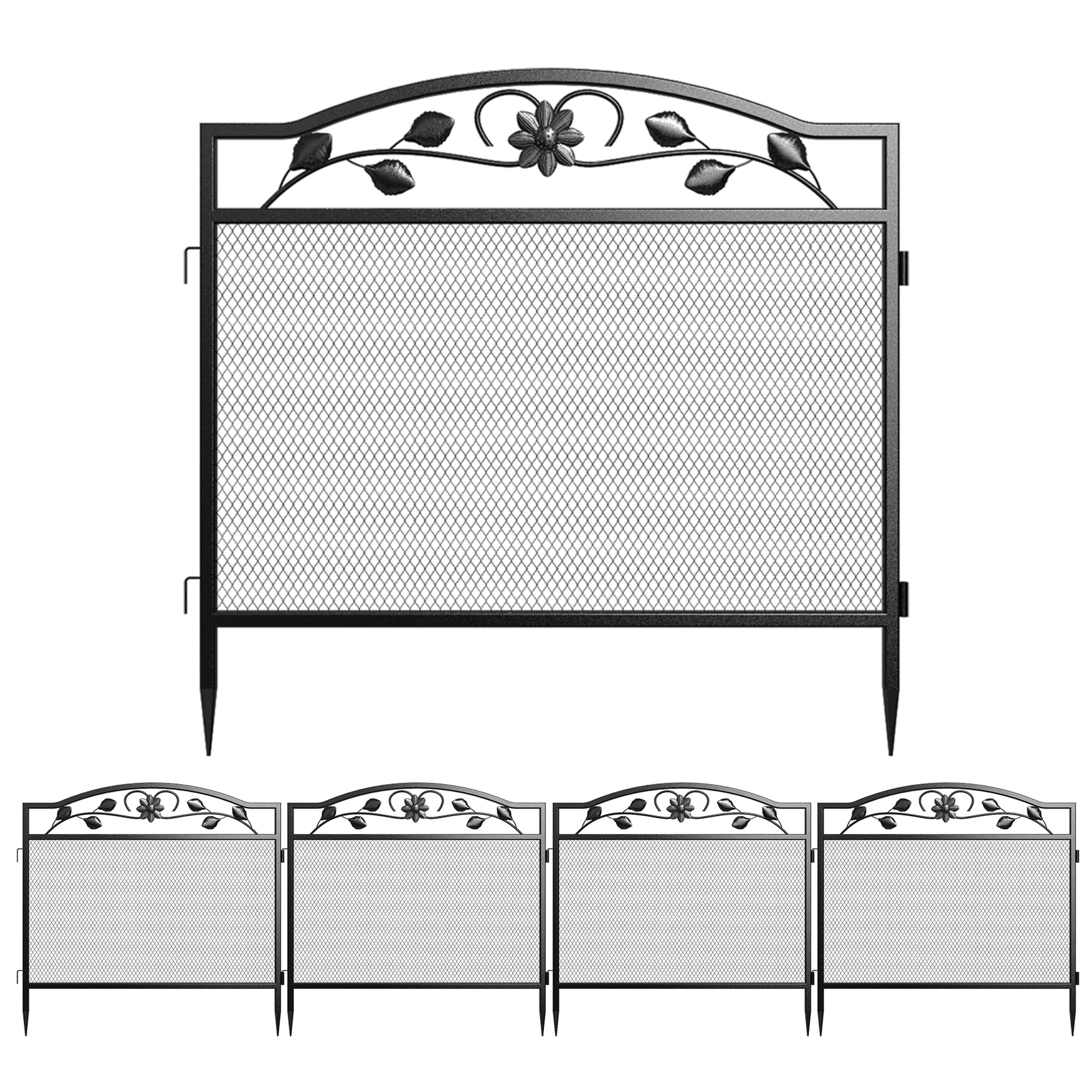 Decorative Garden Fence 5Pcs Black Metal Garden Barrier Dog Fence Animal Barrier for Outdoor Garden Yard Patio