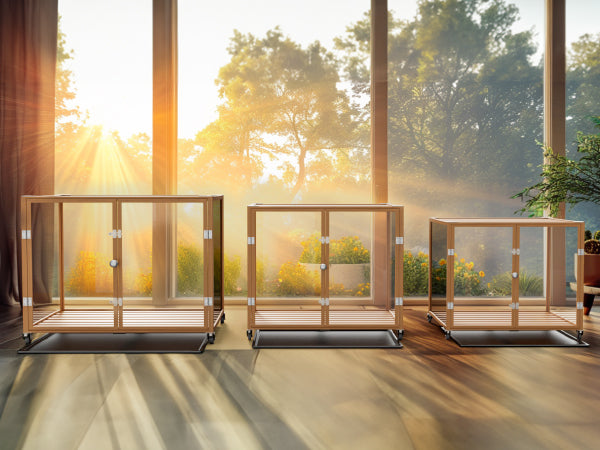 World’s First Innovative Dog Cage - Bingopaw innovative cage breaks away from the limitations of traditional metal wire crates, which are prone to rust, and wooden cages, which can become damp over time, it is the first of its kind to incorporate tempered glass and an aluminum frame, giving it a distinctive look and stand out on the market, a masterpiece of aesthetics and functionality, with exceptional resistance to rust and impact, this cage is sure to be a premium choice for discerning pet owners who seek the best for their pets