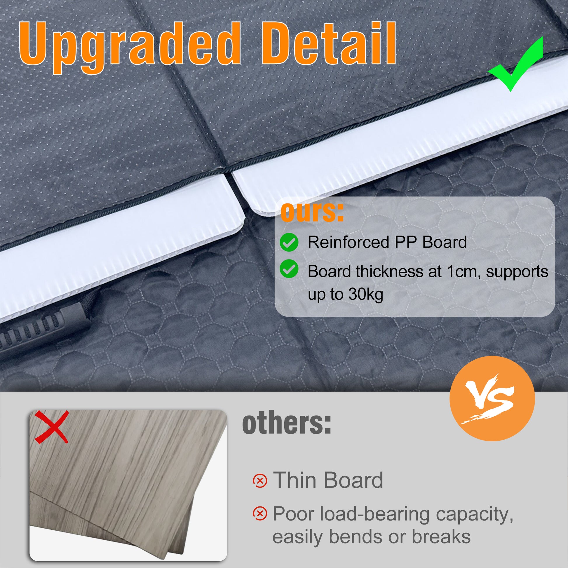 【Car Backseat Extender】This Bingopaw extender cover prioritizes your dog’s comfort with a generously spacious interior, it transforms cars’ backseats into a stable resting area, allowing dogs can sit up, stretch out for a lazy nap, or curl up—no squishing, no feeling confined, thicker hard PP boards on the bottom adds structure, built to resist bending or warping, safely hold pets up to 30kg, covered with soft, durable polyester fabric, enables pets feel comfortable, while adding an extra layer of protection