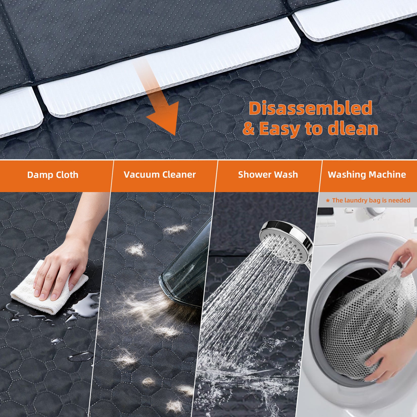 【Hammock Car Seat Protector】The car extender cover functions as both a secure pet hammock and a protective barrier, creating a dedicated spot for dogs of all breeds, it's an essential accessory that boosts vehicle’s functionality and elevates your pet’s travel experience, crafted with water-coated polyester and reinforced with sturdy PP boards at the bottom, wear-resistant, quick-drying, resistant to deformation and wrinkles, the double stitching increases its durability, when not in use, the cover folds compactly for convenient storage when not in use, and it can be quickly cleaned with a damp cloth or vacuum cleaner, keeping maintenance simple and effortless