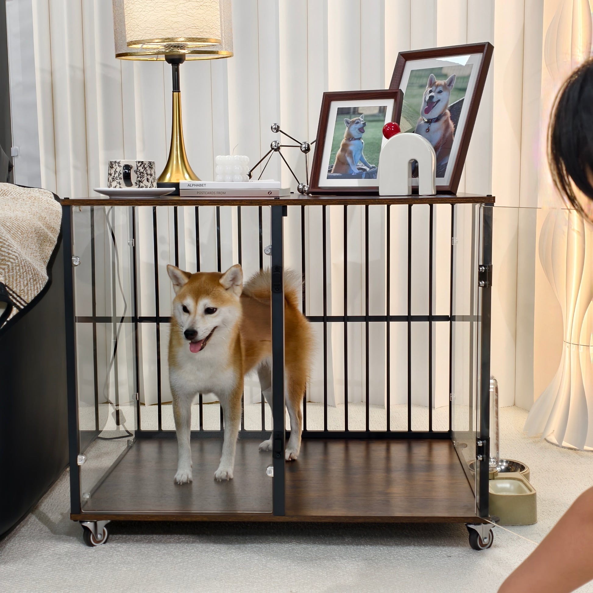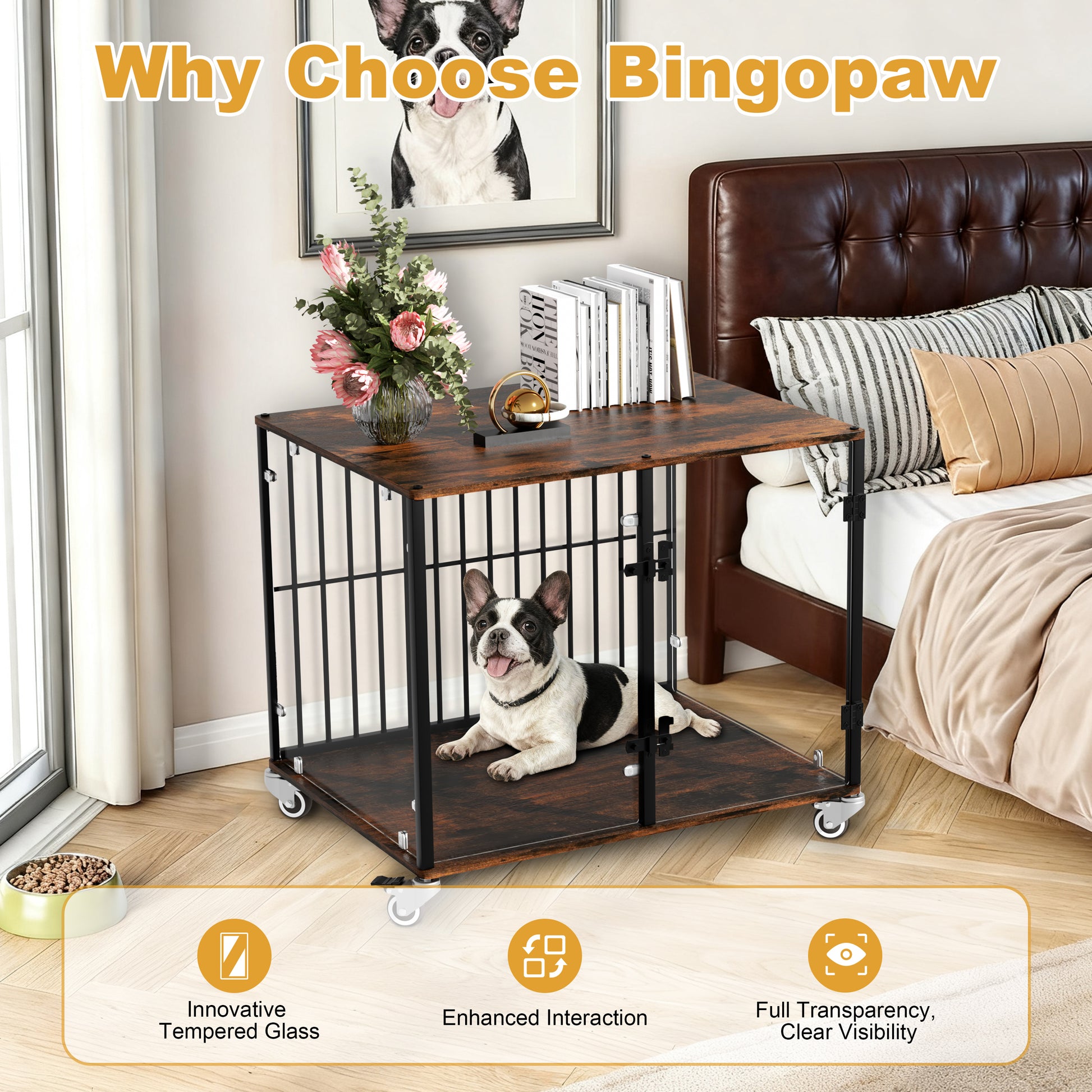【Distinct Bingopaw Kennel】Paired with a soft, cozy dog bed, the kennel ensures your puppies enjoy solid, comfortable rest, its transparent glass panels and ventilated back keep pets relaxed without feeling confined, while wood-grain tabletop blend naturally with your home decor, unlike ordinary wire cages, it creates a stress-free environment where pet can unwind peacefully, thoughtfully designed for both safety and durability, this piece not only enhances pets comfort also adds warmth and style to your living space, making it a true fusion of functionality and modern home design
