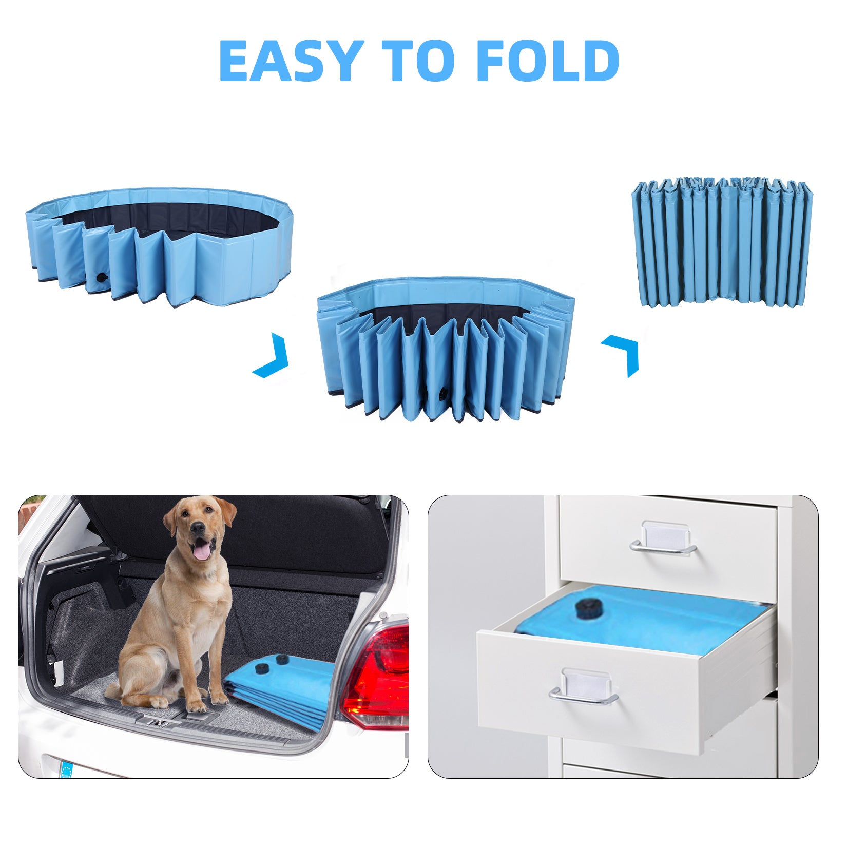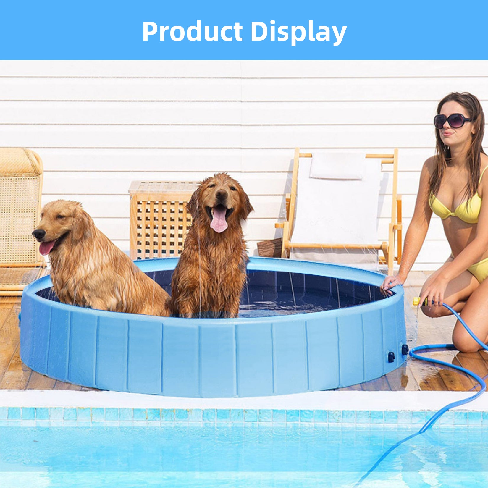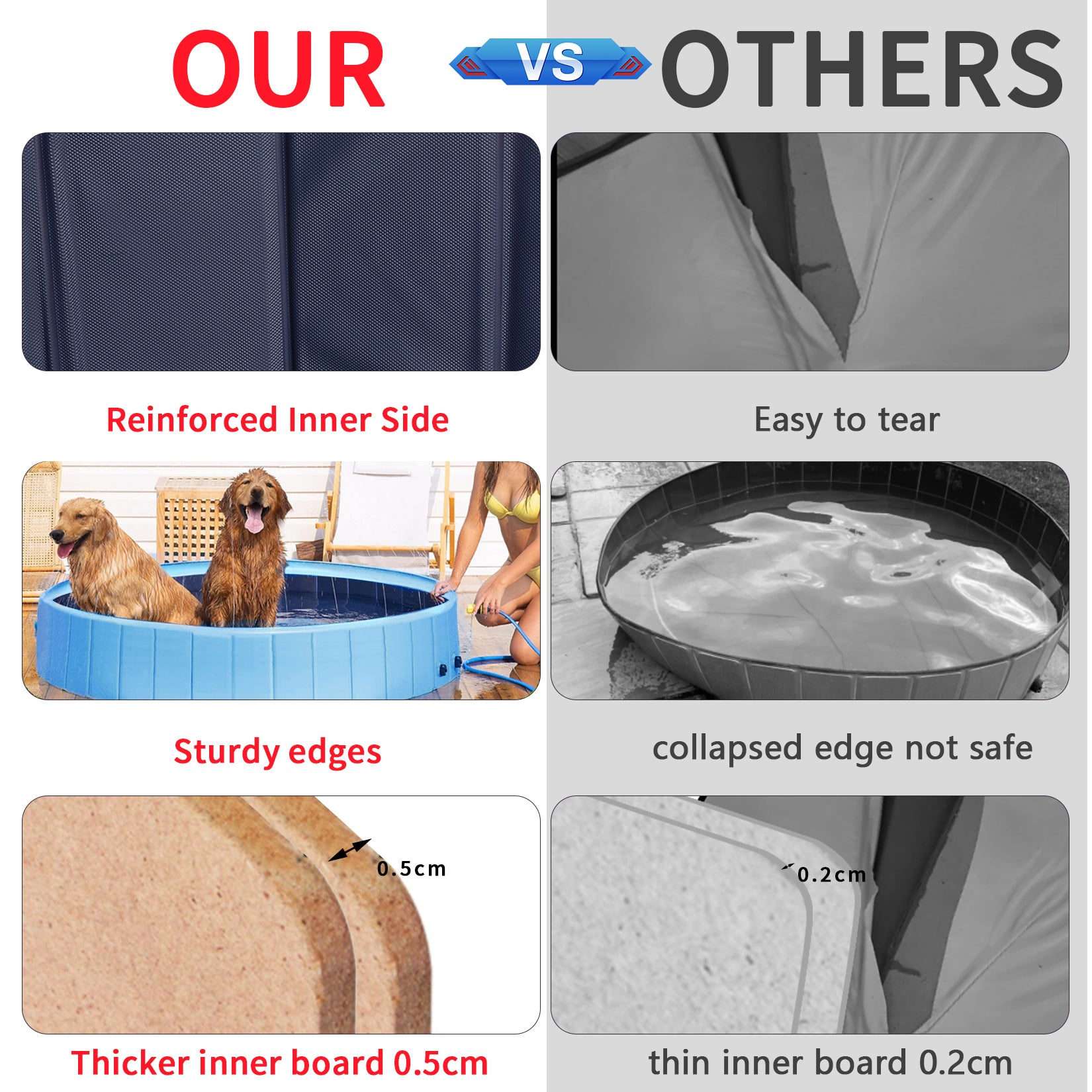 【Heavy Duty Construction】Dog bathtub pool is constructed of a durable PVC and high-density cardboard side walls, preventing water spillage and punctures, anti-wear and scratch, anti-deformation and anti-collapse, can stand up to plenty of play, robust to keep its shape