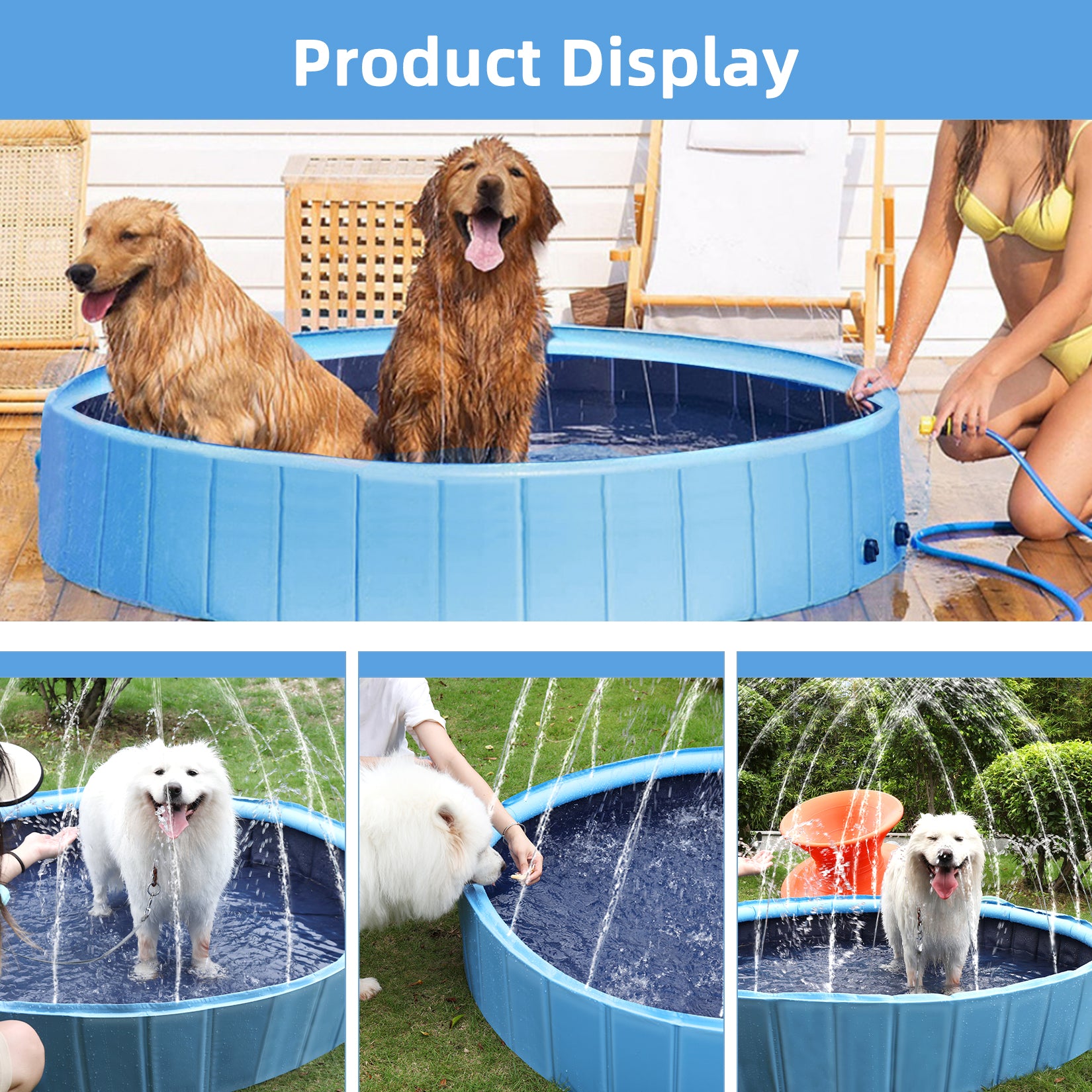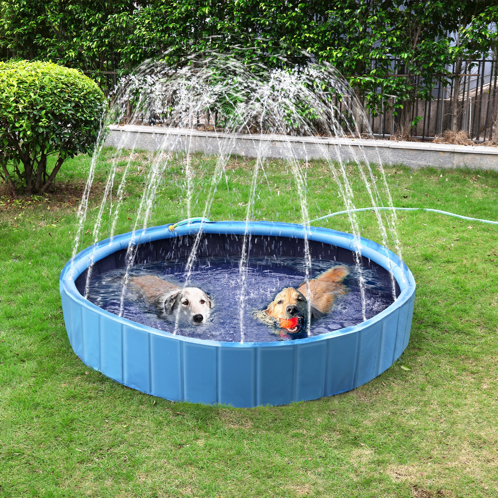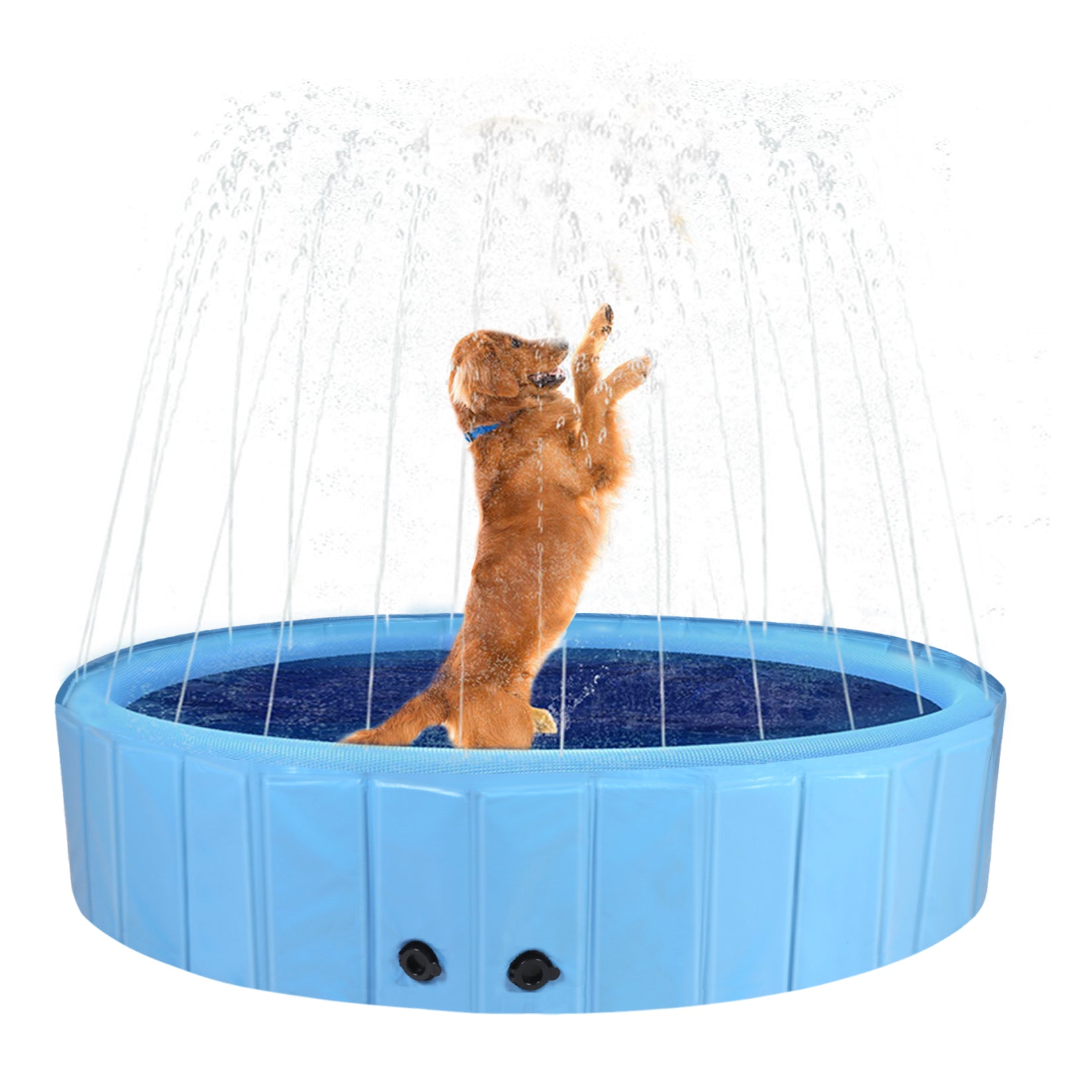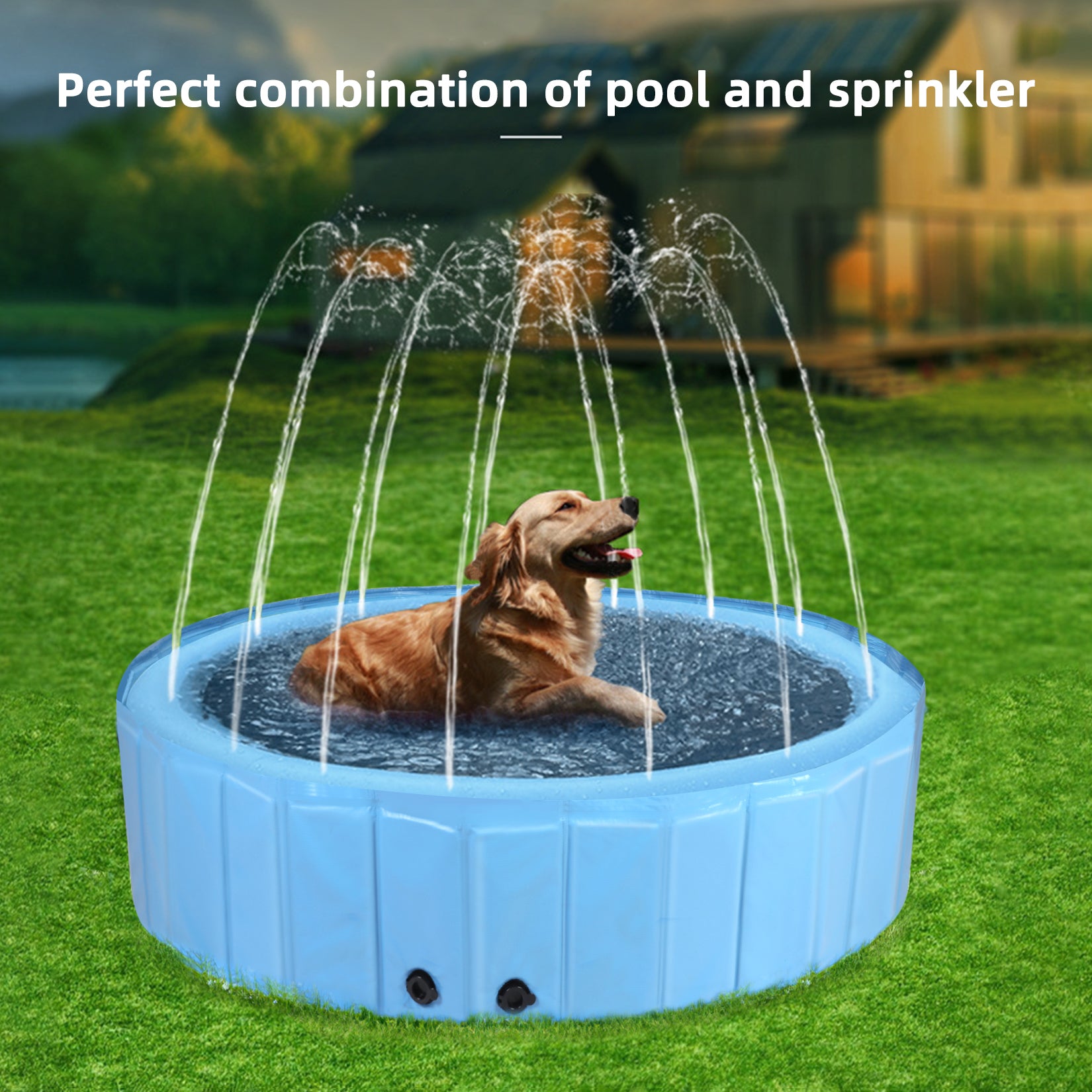 Dog Swimming Pool: Heavy Collapsible Dog Pet Swimming Pool with Spray Sprinkler Pet Bathing Tub for Outside Backyards, Kids Pets Dogs Cats