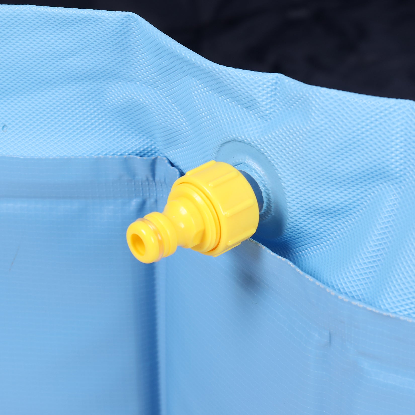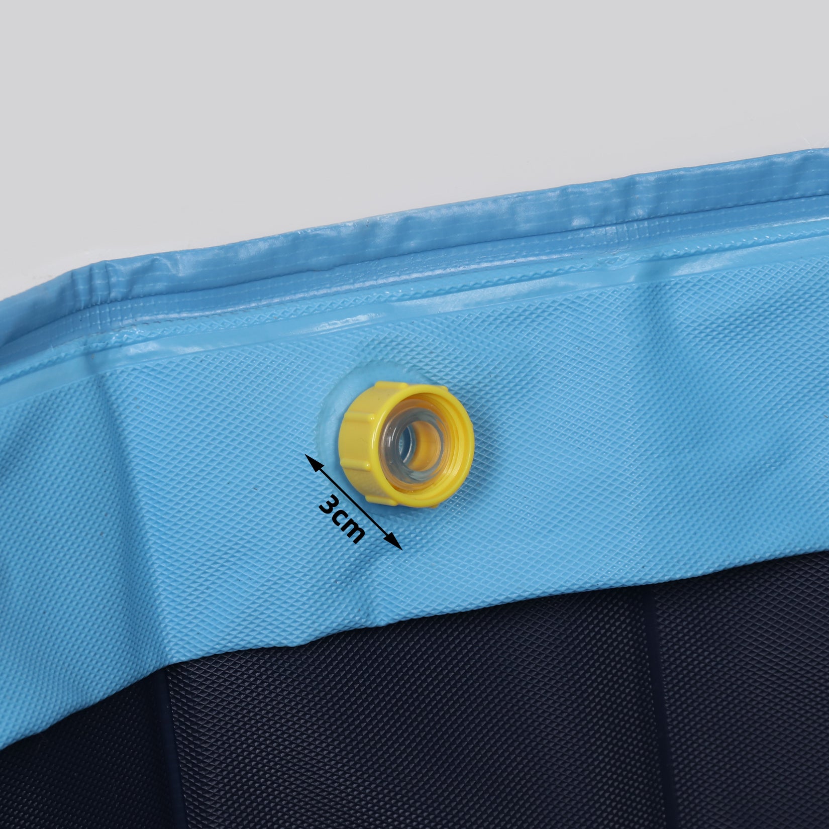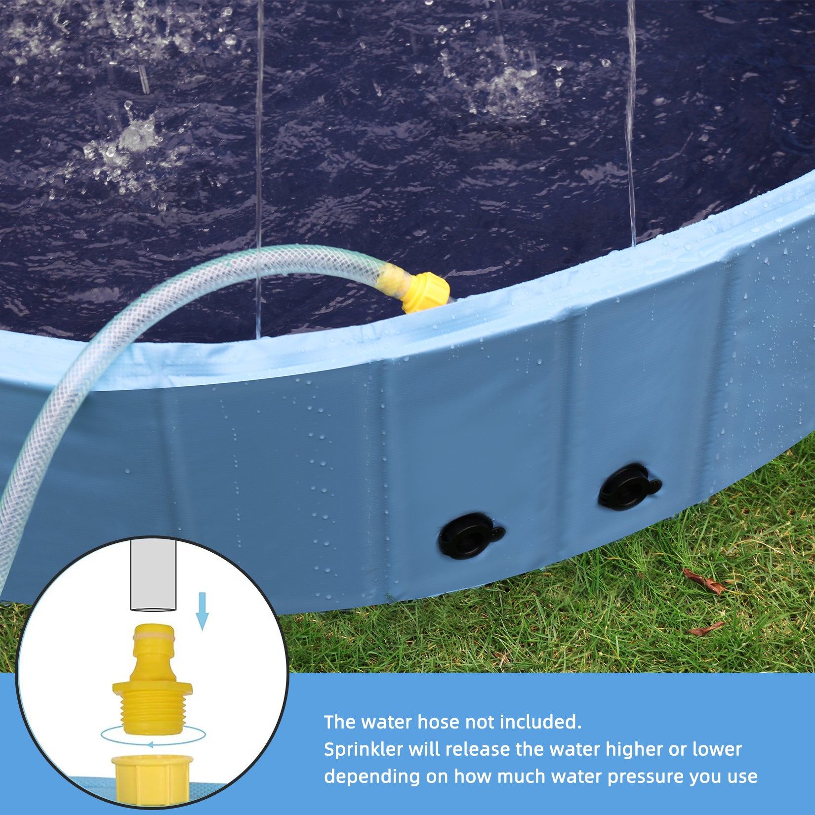 【Foldable Design & Drain Valves】Our pet bath pool is foldable for portability and store, simply setup and fill with water, comes with a connector you can attach to your garden hose to control the height of the sprinklers, built-in two drain valves don’t leak and drain the water very quickly when opened