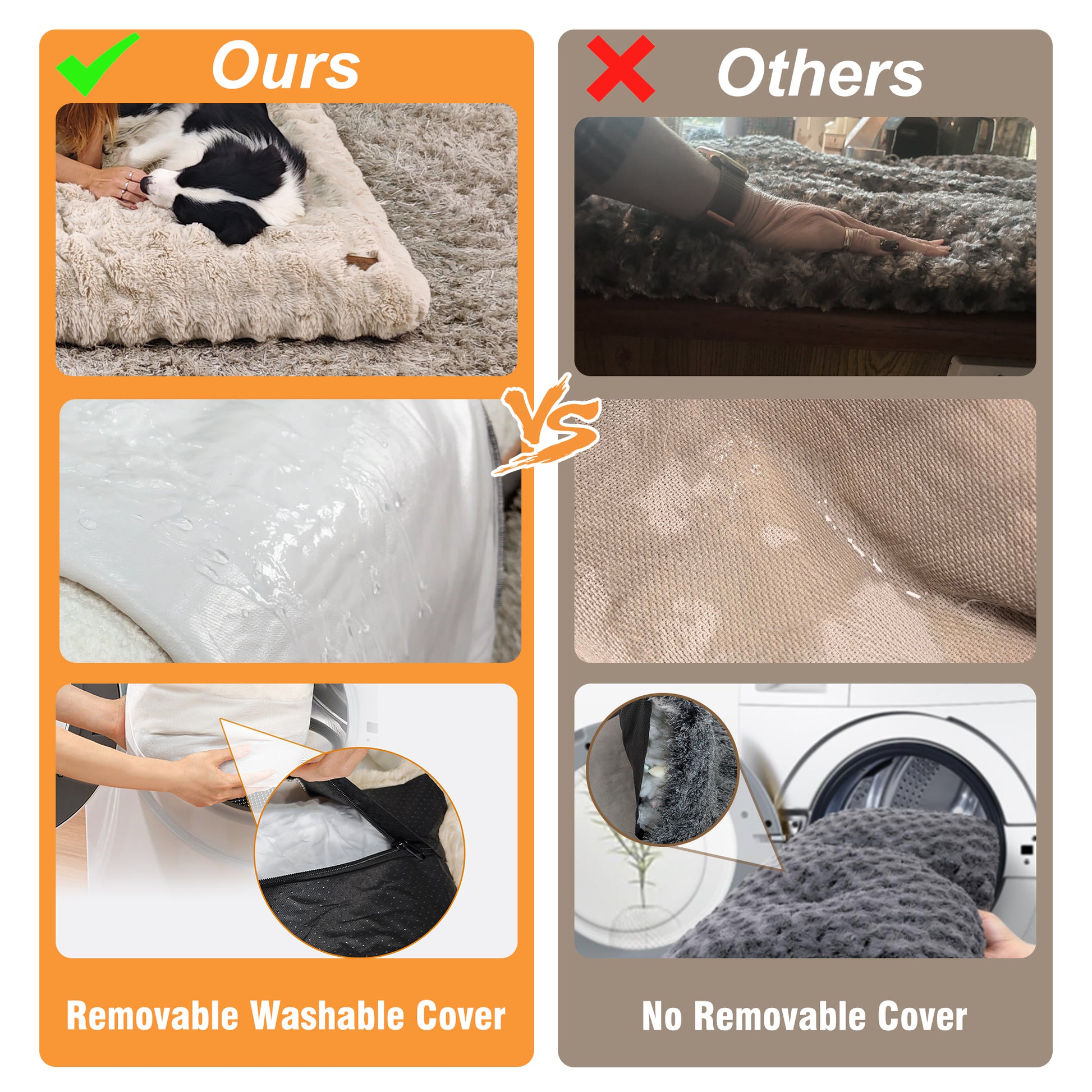 Pet-friendly DetailsThe materials used are not only soft but also durable, ensuring the pillow bed can stand regular use without losing its shape or quality, designed with convenience in mind, the bed features a zipper removable cover for easy cleaning, to preserve the fabric during machine washing, its recommended to use a laundry bag for added protection, waterproof coating lines the underside of the cover, forming a protective barrier against pet urine or accidental spill, the cover is fitted with a robust, 1cm-wide zipper pull for secure closure, prevents breakage during repeated washing, the bed comes vacuum-compressed for shipping, please wait about 72 hours for a full expansion, gently pat it and reshape if necessary