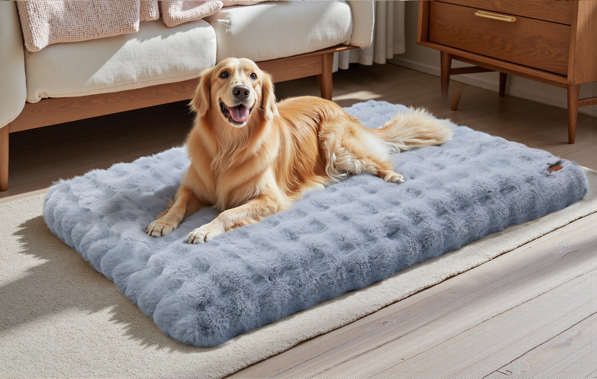 Treat your beloved pet to a premium rest experience with this Bingopaw new cozy dog mat where luxury meets functionality. Designed with meticulous attention to detail, it features a polyester faux fur surface that adds warmth and style to any room, while its durable construction ensures lasting use. Whether placed in the living room, inside a crate, it elevates pet's lounging space and becomes a part of home decor.