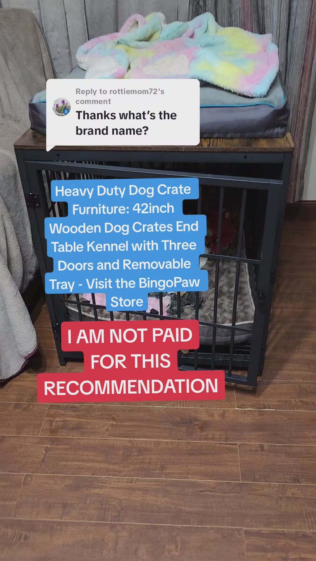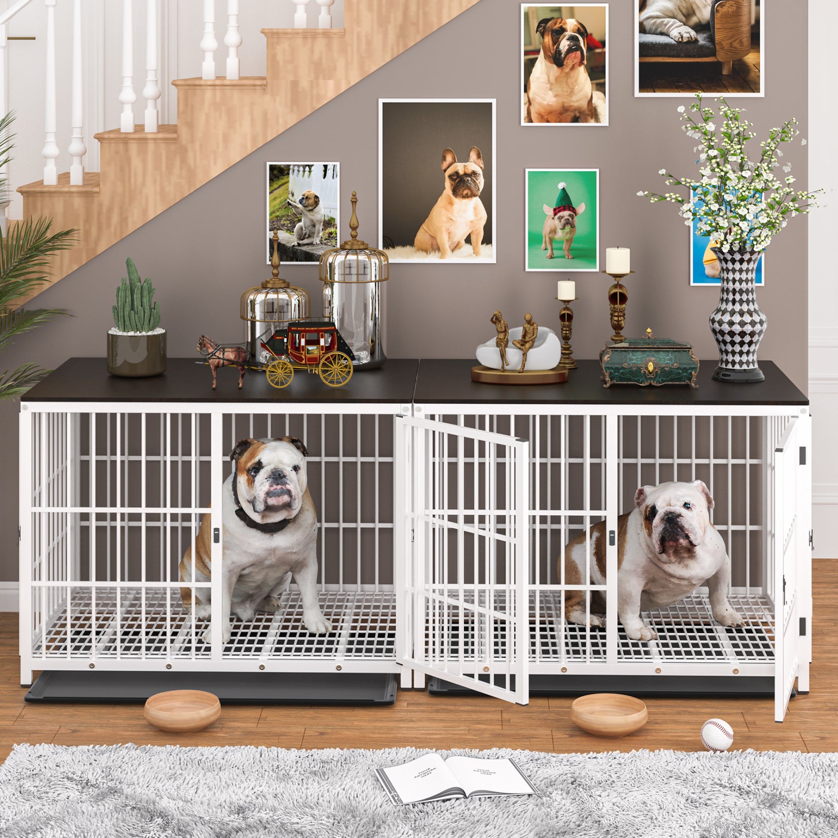 【Multifunctional Removable Tray】Bingopaw wooden dog crate has a multifunctional removable tray compared to others, you can slide it beneath bottom to catch any dirt and food residue, easy to clean without any hassle and no need to move the heavy crate for clean, also, you can put the tray inside the crate and include a dog bed, reduces anxiety and soothe dogs when they stand on the wire bottom