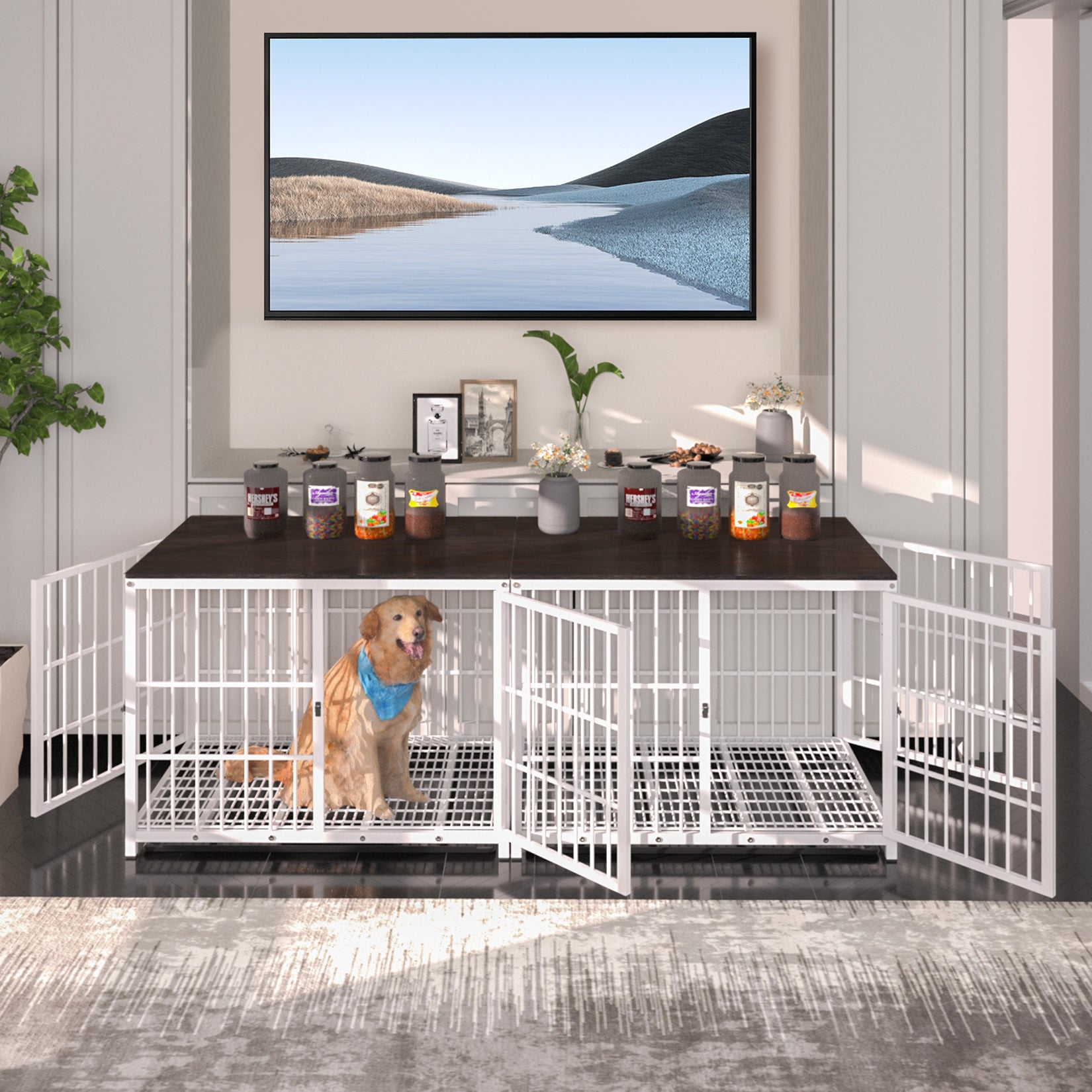 【Unlimited Combination Wooden Dog Crate】This is the unique dog crate in the market, enable you can merge two or three of them via the 45mm screws into an extremely large one without limit, you can make it a 72inch, 108inch, 144inch, 180inch, 216inch dog crate to fit for your house, suitable for any sized dog breeds, ideal for puppies to adult