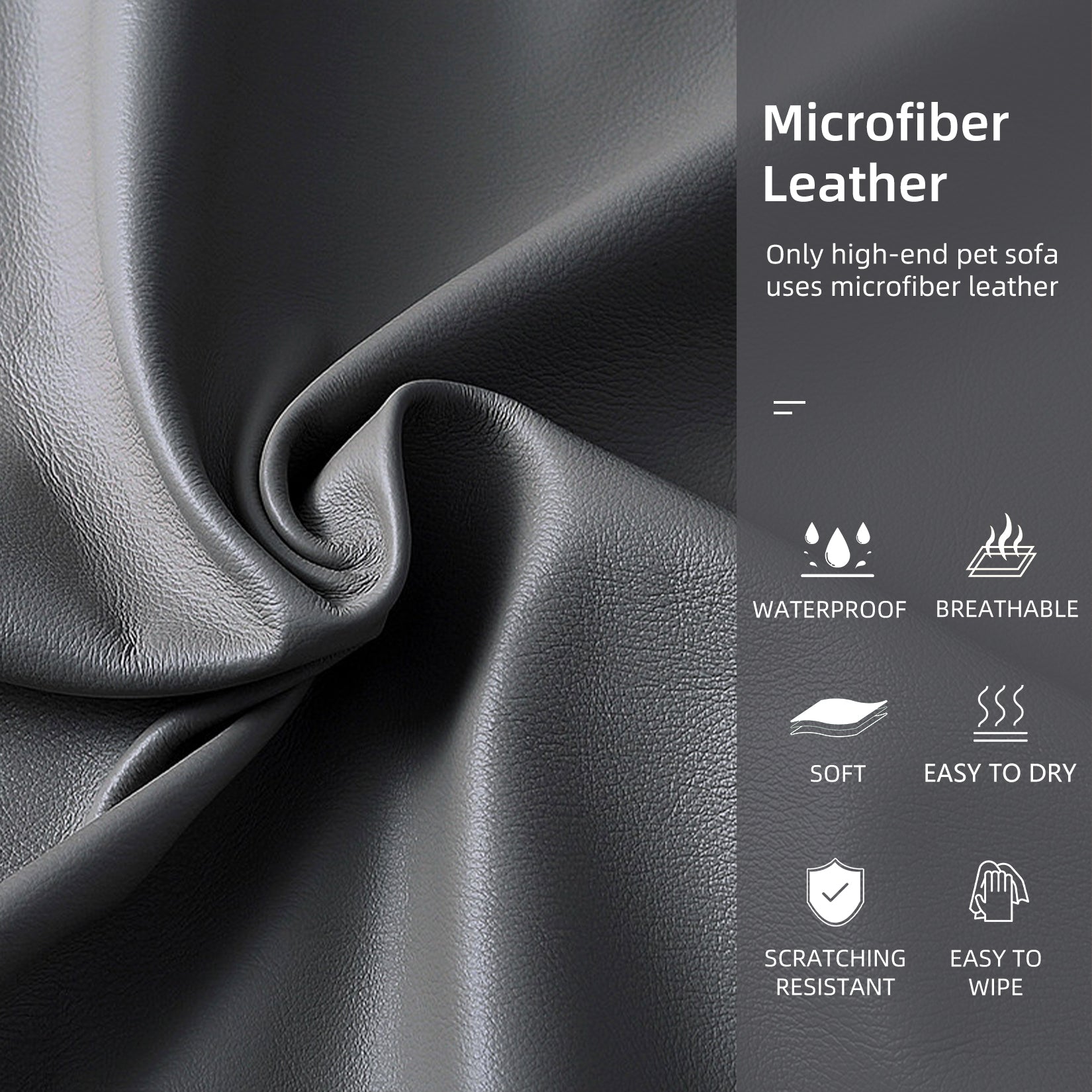 Break Tradition & Innovative Material - New innovative dog sofa with an upscale fabric - microfiber silicone leather fabric, which is often used in most home furniture supplies, such as human sofa,or dining chairs, the fabric feels luxurious and soft in feeling, high tensile strength, skin-friendly and anti-wrinkle, excellent resistance to scratch and wear, good beathability comforts of your pets, the dust or pets’ hair don’t stick on the fabric, easy to clean with vacuum cleaner or wet cloth