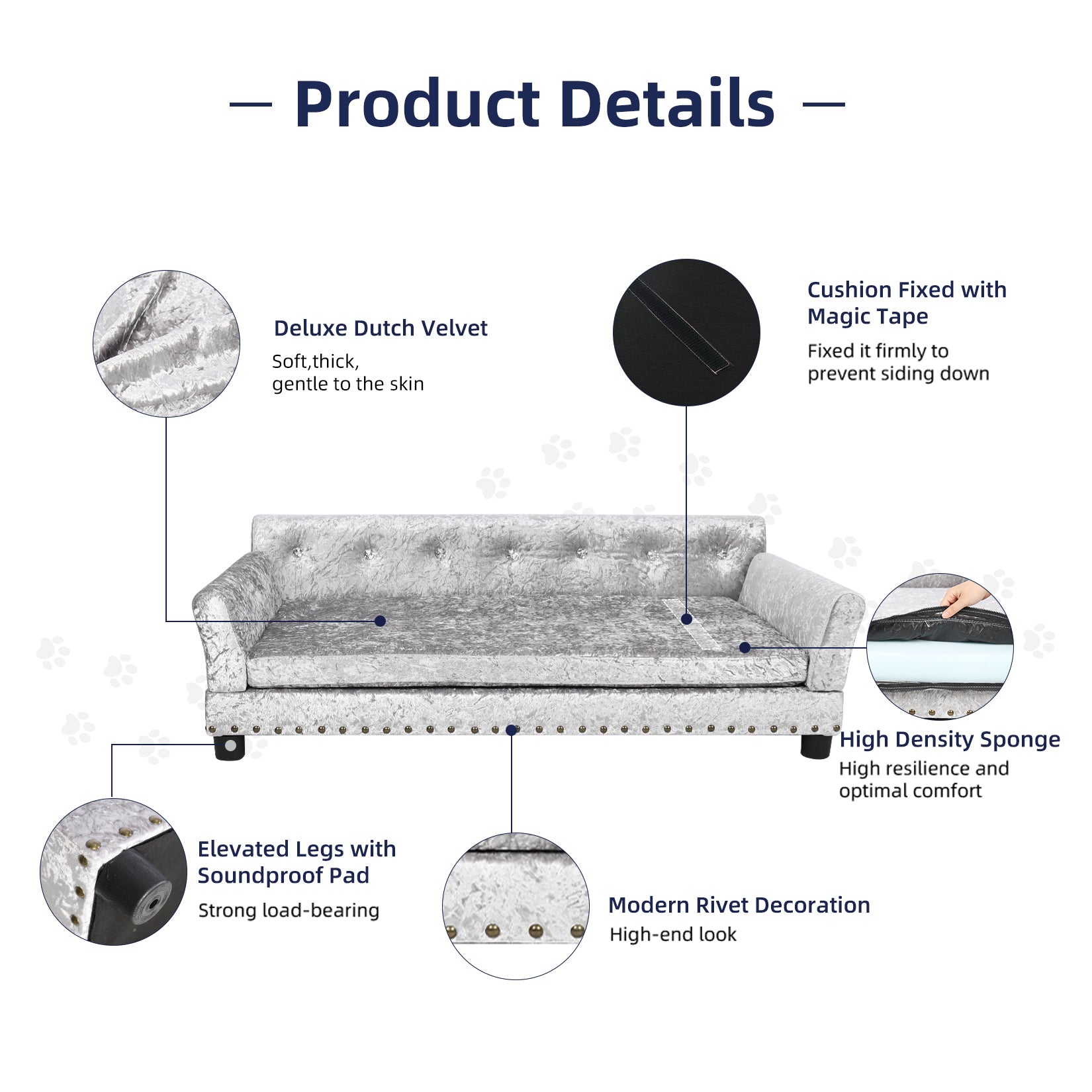Break Tradition & Innovative Material - New innovative pet sofa with a high-end fabric - Deluxe Dutch velvet, which is often used in the most upscale human sofa, the fabric features a little shinning glitter effect under the sunlight, is soft and silky to the touch, skin-friendly and anti-wrinkle, resilient to the daily wear and tear, relatively thick and delicate than regular fabric, no fading and no pilling, ultimate comforts of your pets, and treated them as family