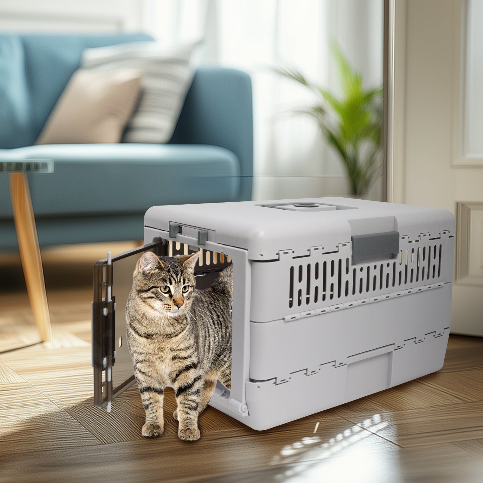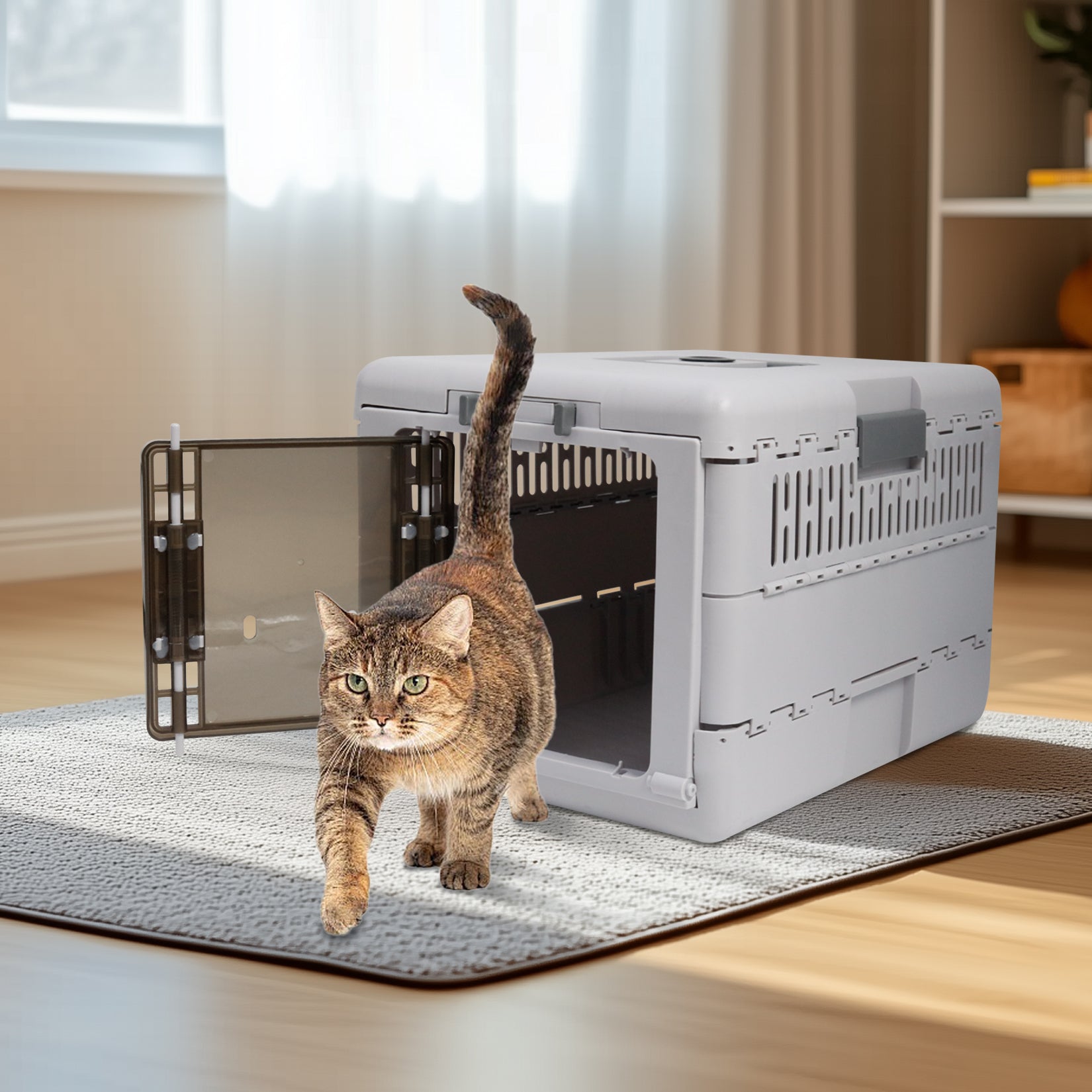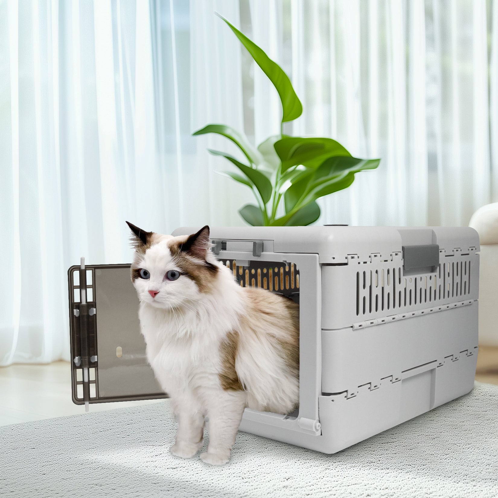Portable Plastic Cat Kitten Travel Carrier Pet Carry Crate Collapsible Design
