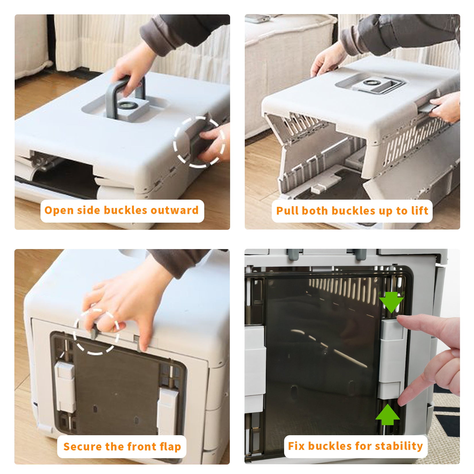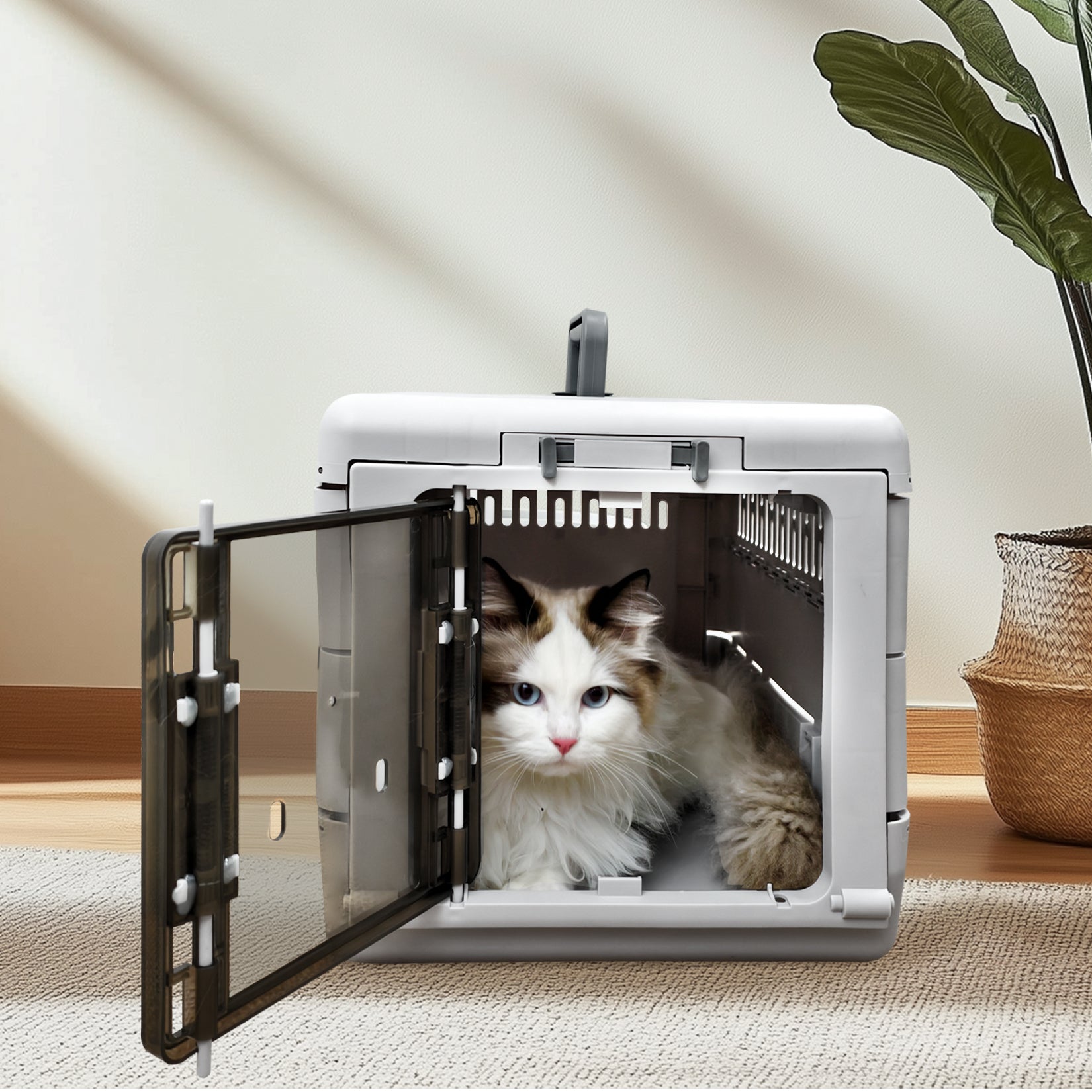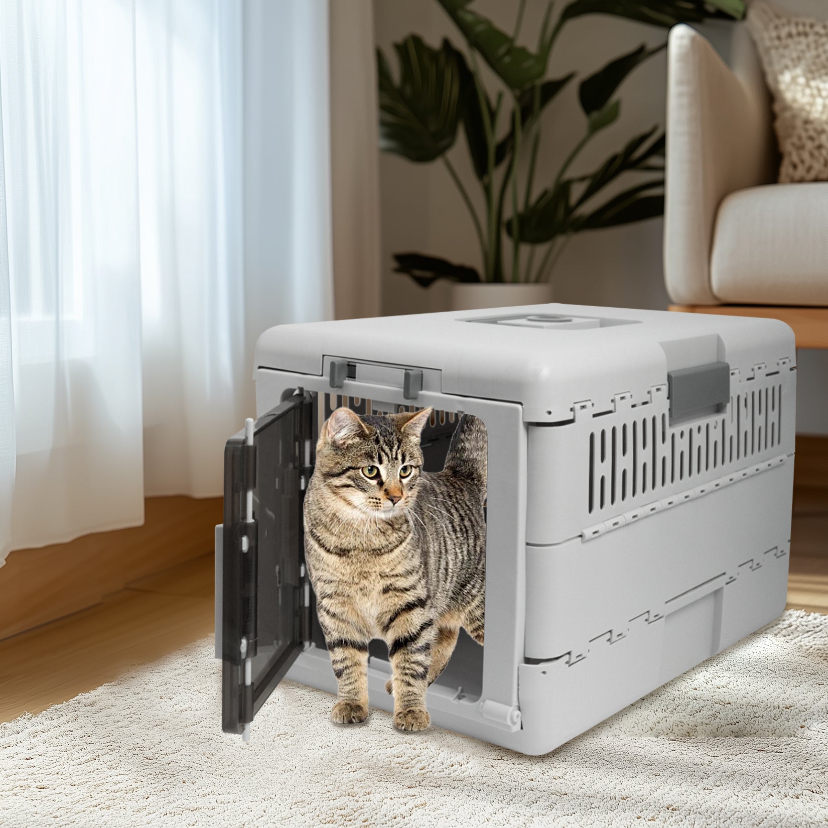Portable Plastic Cat Kitten Travel Carrier Pet Carry Crate Collapsible Design