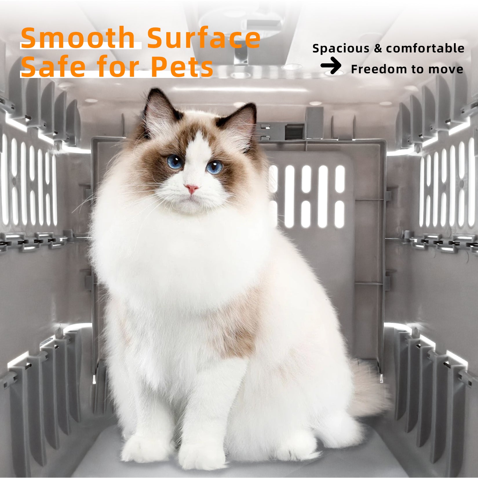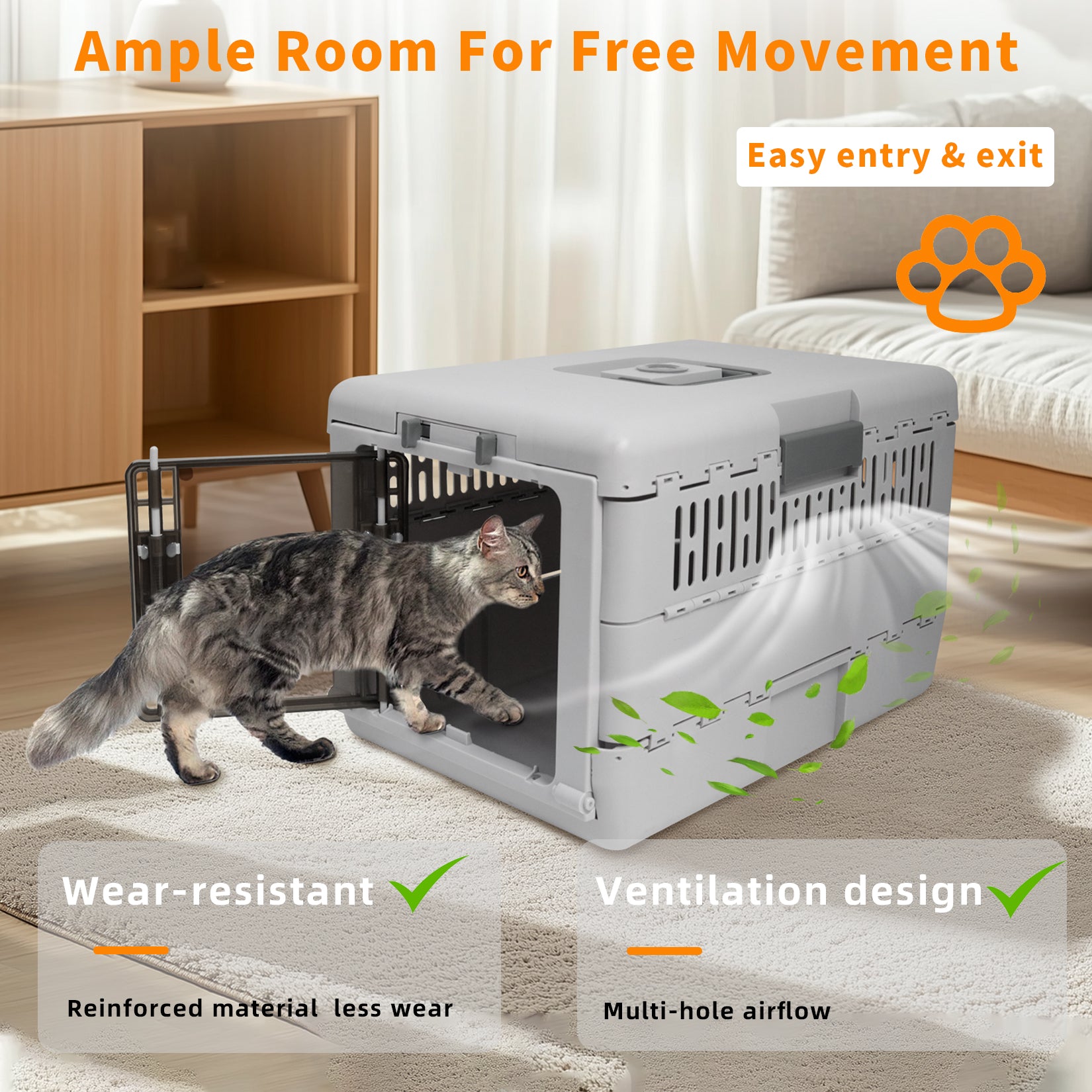 Plastic ConstructionThe pet carrier crate is constructed from durable, lightweight PP plastic, ensuring a sturdy yet portable design, resistance to scratches and impact without cracking, while remaining easy to carry, safely support pets weighing to 7.5kg (16.53 lbs), if your kitten is on the heavier side, double-check the weight limit for the carrier you're considering and make sure your cat has room to move comfortably in i