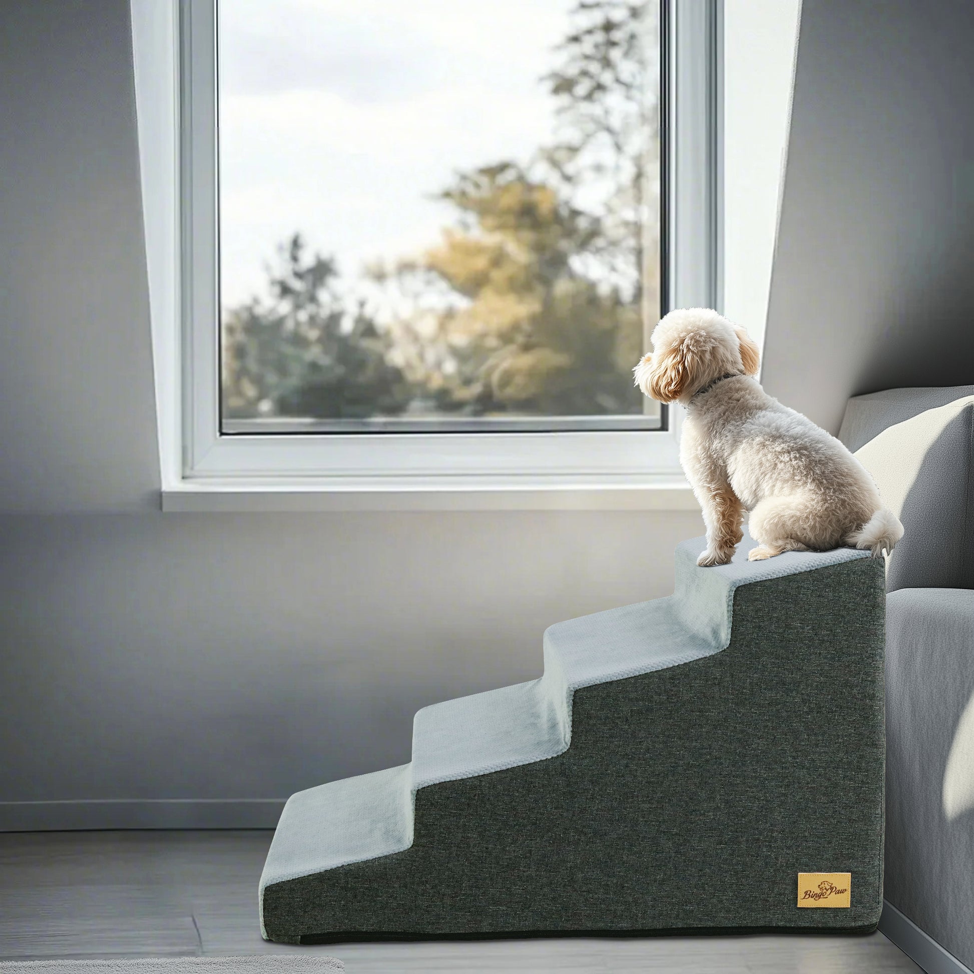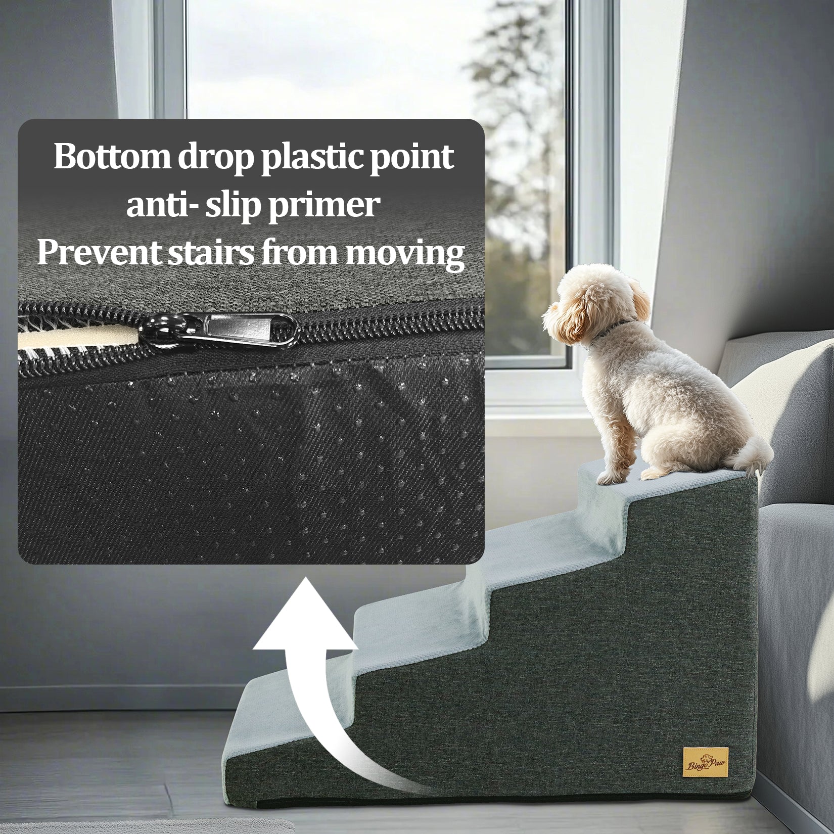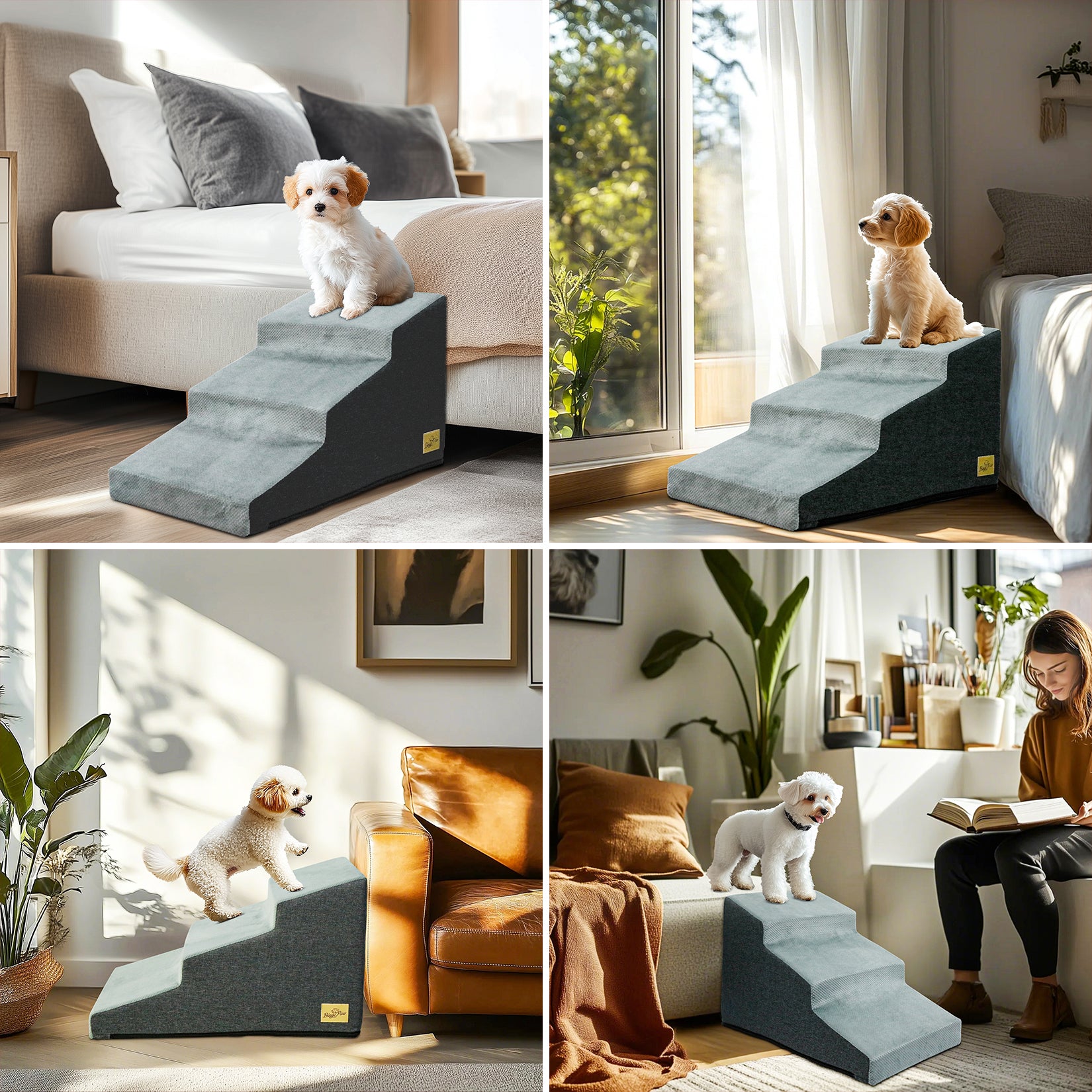 Sponge Dog Stairs for Bed & Sofa, 4 Step Dog Stairs, Dog Bed Steps for High Places, Non-Slip Gray Pet Stairs for Small Dogs