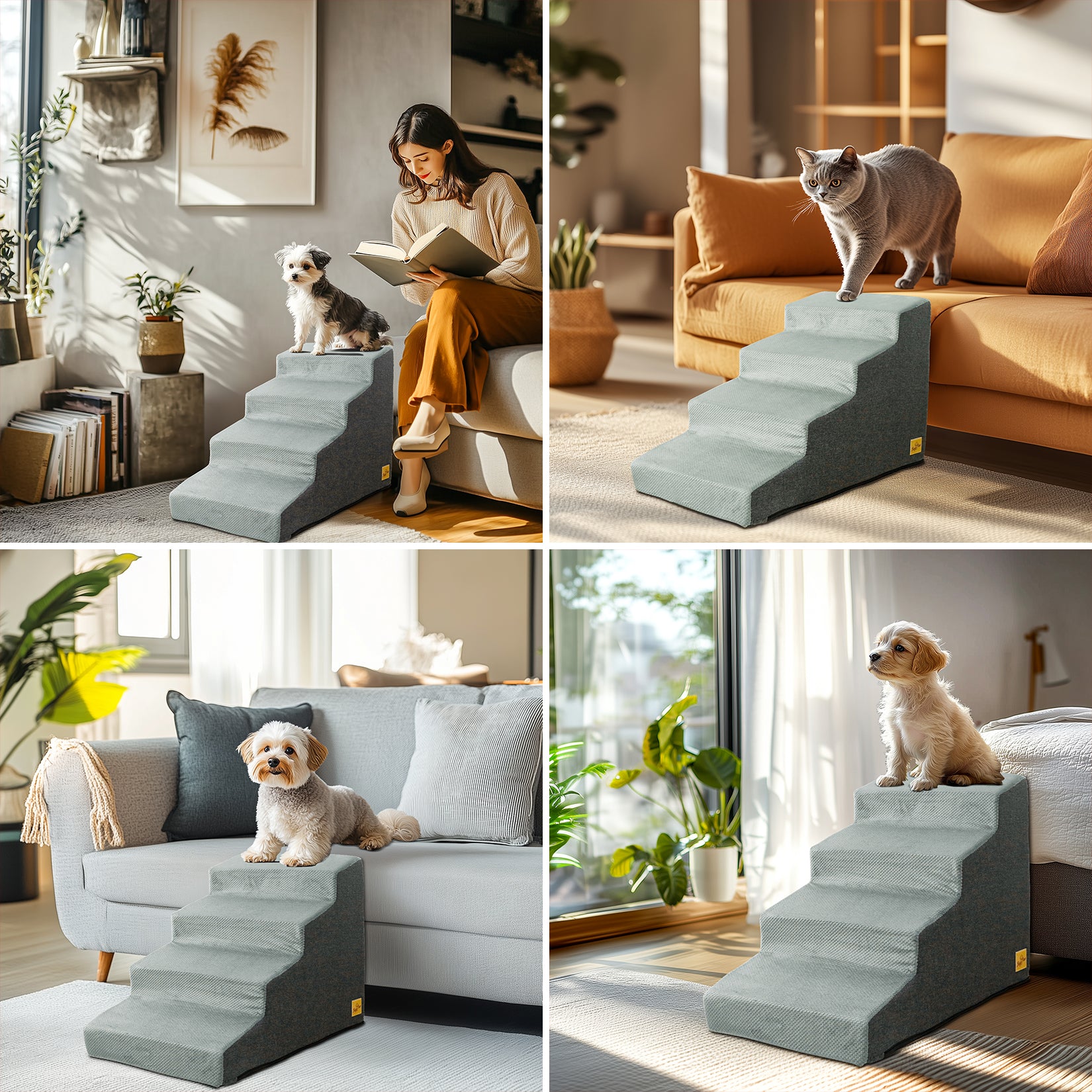 Easy to Clean and Maintain: The removable gray pet stairs cover is machine washable for hassle-free cleaning, our pet stairs come vacuum-sealed for safe delivery, please allow 24-48 hours after opening for the foam to fully expand to its original shape