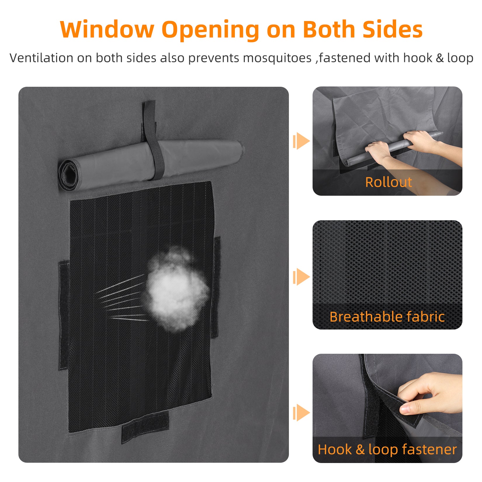 Equipped with double doors, easily roll up flap with hook & loop fasteners.
