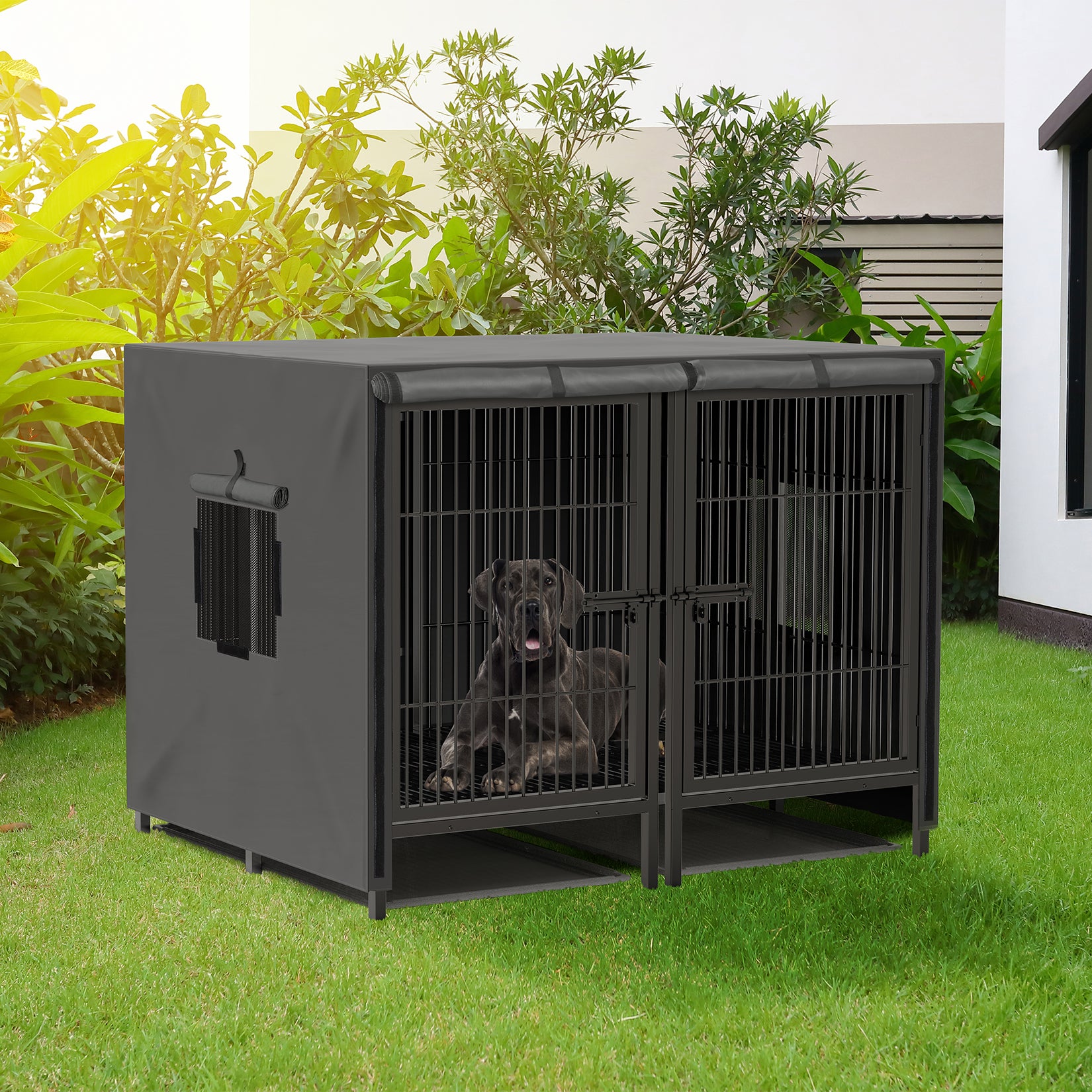Durable oxford cloth BingoPaw dog cage cover, specially designed for our heavy dog cage, it could help to reduce anxiety and keep the dogs safe inside the crate. Easy to use, the cover rolls up 2 sides for good air flow.